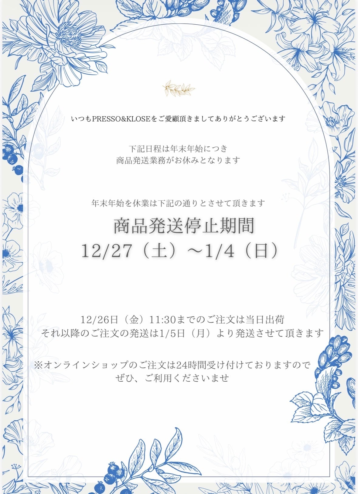 ≪予約販売≫ PONT DE CHALONS (ポンデシャロン) 【2026年1月初旬頃お届け予定】 メルシーバッグ(ポンデの福袋) ※こちらの商品はご注文時の決済となります。 参考上代 ボアアウター¥22,000税込み カットソー¥9,900税込み ワンピース¥20,900税込み メルシーバッグ¥2,200税込み トータル¥55,000 ■デザイン(ディテール) この冬の装いをまるごと楽しめる、 とってもお得なポンデのメルシーバッグ! ポンデの福袋です♩ 届いてすぐに着られる嬉しいトータルコーデ入りです。 ■メルシーカットソー ボーダー柄が目を引くハイネックプルオーバー。 メロー仕立てのヘムはアウトスタイルでもさりげなく可愛く。 一枚で着てもレイヤードにも映える優秀アイテムです。 ■メルシージャンパースカート すっきりとしたVネックがレイヤードを引き立てるジャンパースカート。 季節感のあるやわらかなコーデュロイ素材で、 冬のスタイリングに映える一着。 両サイドに配したアウトポケットが、 実用性とデザイン性を兼ね備えています。 ■メルシーボアコート ふんわり軽やかなシープボア素材で、 気軽に羽織れるあたたかコート。 ヒップが隠れる安心の丈感で、冬のお出かけにもぴったりです。 コーデュロイのトリミングとくるみボタンがアクセントです。 ■メルシーバッグ MERCIのメッセージはポンデからお客様へのメッセージ。 落ち着いたグレーが上品な印象のオリジナル不織布バッグ。 荷物の多い日も安心なマジックテープ付きで、 大容量なエコバッグとしても活躍。 圧着ではなく全て縫製で仕上げているため、 耐久性が高く、長くご愛用いただけます。 モデル身長160㎝ 【こちらは商品の特性上、返品交換はできません。】 ※モデル着用写真は照明の関係により、 実際よりも色味が違って見える場合があります。 またパソコン・スマートフォンなどの環境により 若干製品と画像のカラーが異なる場合もございます。 ※商品の色味は、商品単体または商品アップ画像をご参照ください。 ※採寸に関しての多少の誤差はご了承下さい。 ※お取り扱いの際はATTENTIONタグ・洗濯ネームタグをご確認下さい。 ※ご覧になるブラウザにより、PCモニターの発色・画面の種類により実物と多少色具合が異なる場合がございます。予めご了承ください。 ※店舗概要にご記載させて頂きます通り、SALE商品に限らず当店では不良品以外のご返品やご交換はお受付しておりません。予めご了承の程、よろしくお願い致します。 ※実店舗でも販売をしておりますので、ご注文頂いたお品物の在庫がないケースもございますのでご了承ください。 ※在庫状況の変動は出来る限り反映するようにしておりますが、ご注文頂きました時点で売れ切れになっている場合がございます。 【ラッピングに関しまして】 ネットショッピングに関しまして、ラッピングサービスはしておりませんので ご了承下さいませ。 【お問い合わせに関しまして】 当店へのお問い合わせに関しましては下記をご利用ください。 ・インスタグラムDM ・電話 ・BASE連絡機能 【発送に関しまして】 こちらは予約商品です。 発送は2026年1月4日以降になります。 基本は佐川急便での発送となります。 ※購入完了メール、発送完了メール、再入荷メールなど、自動配信メールへのご返信はご遠慮頂けますようお願い申し上げます。