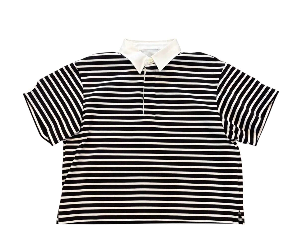 布帛とカットソーを切り替えたプレッピースタイルに仕上げたラガーシャツ。