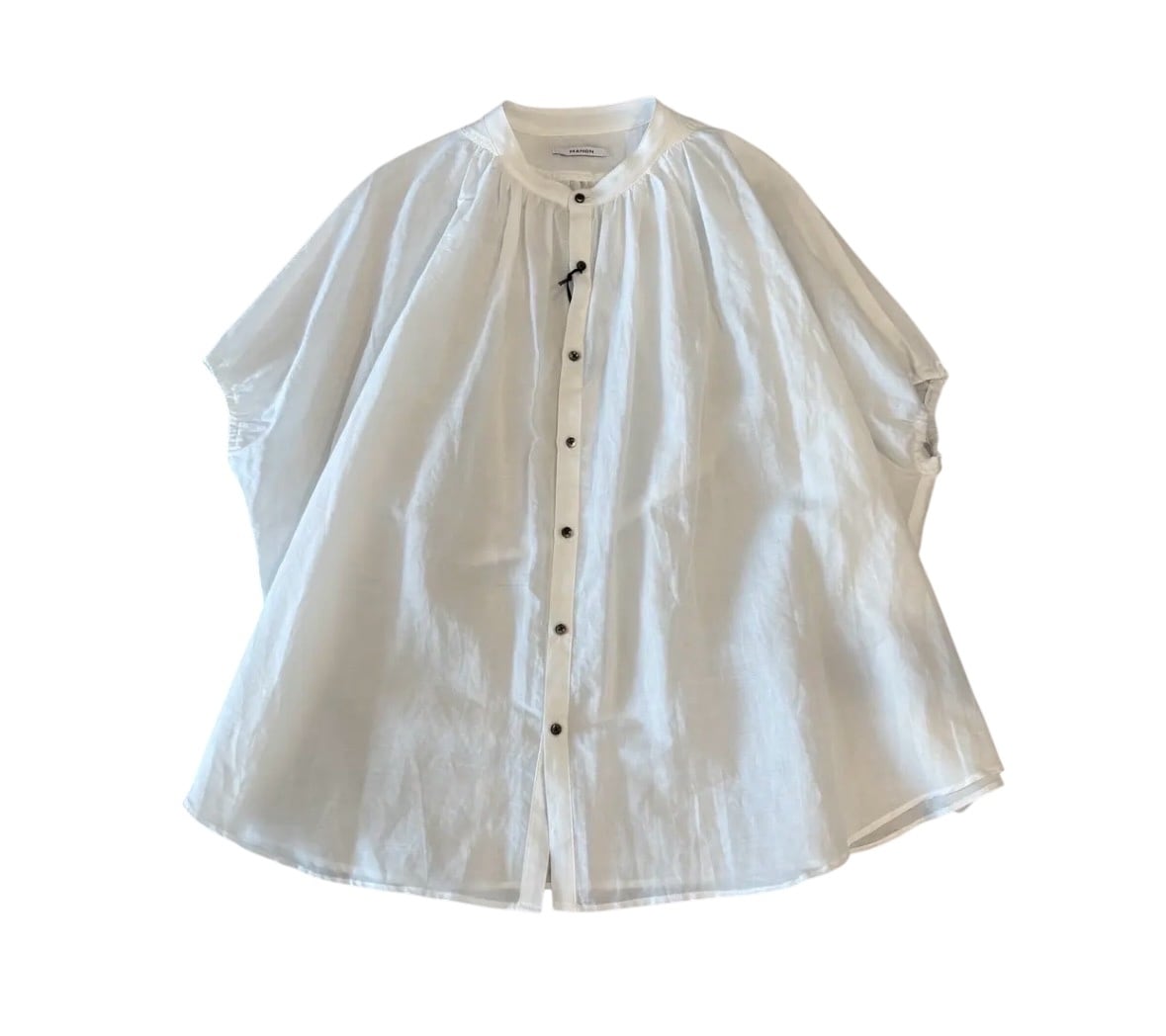 MANON定番アミカルシャツに身幅・肩幅のゆとりをとり、袖口ゴムをいれたパフスリーブです。