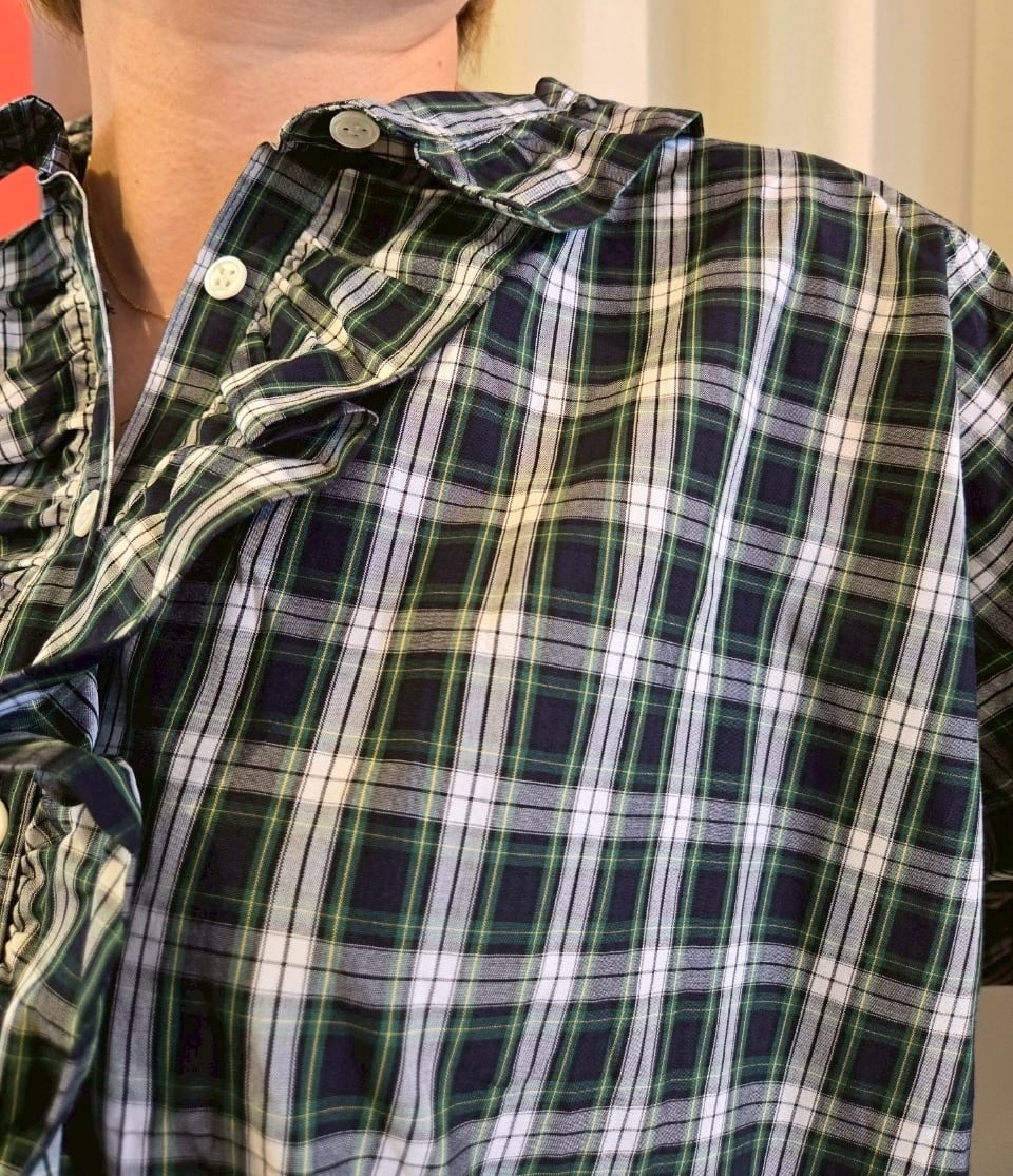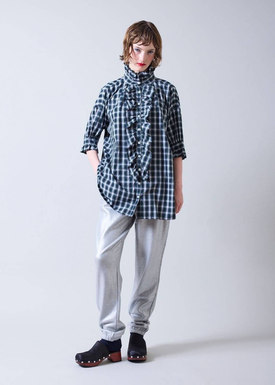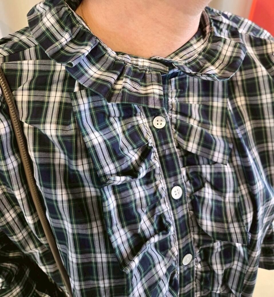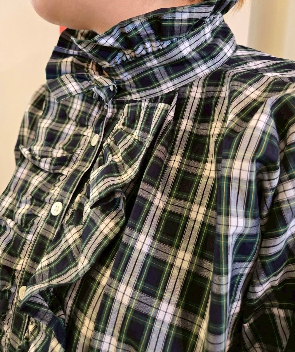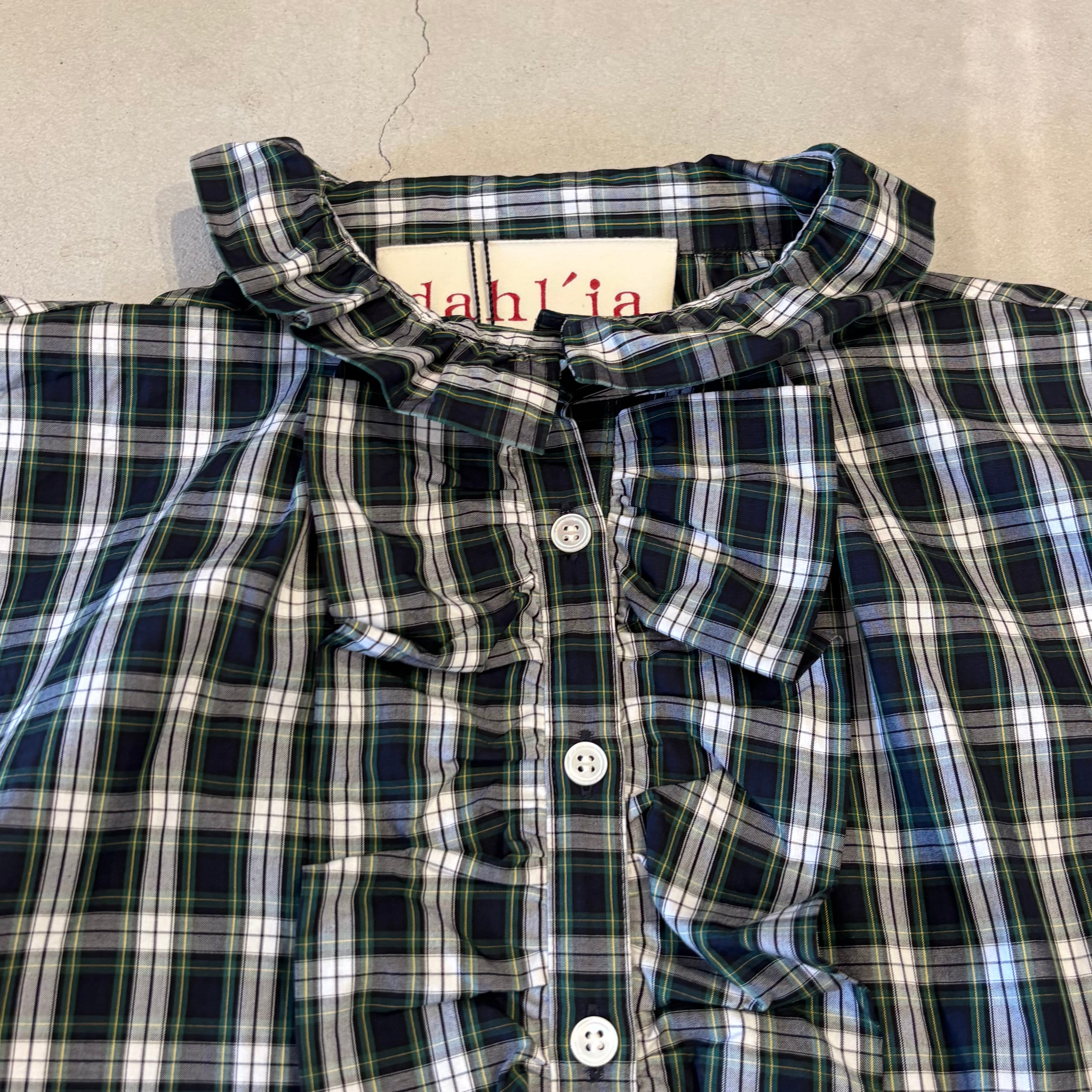 トラディショナルなチェック柄&ボリュームがあるフリルが華やかさを演出します。