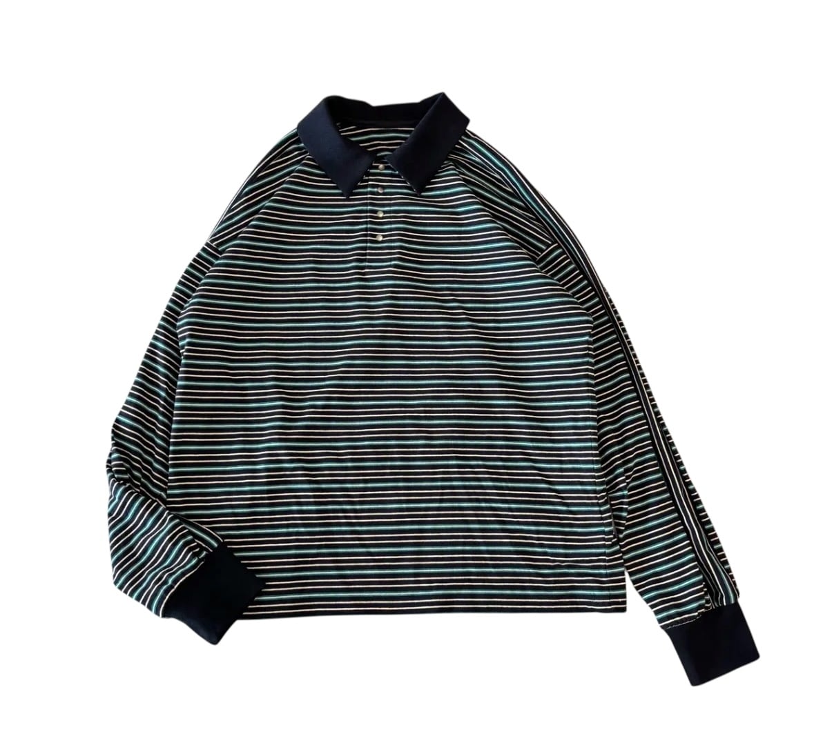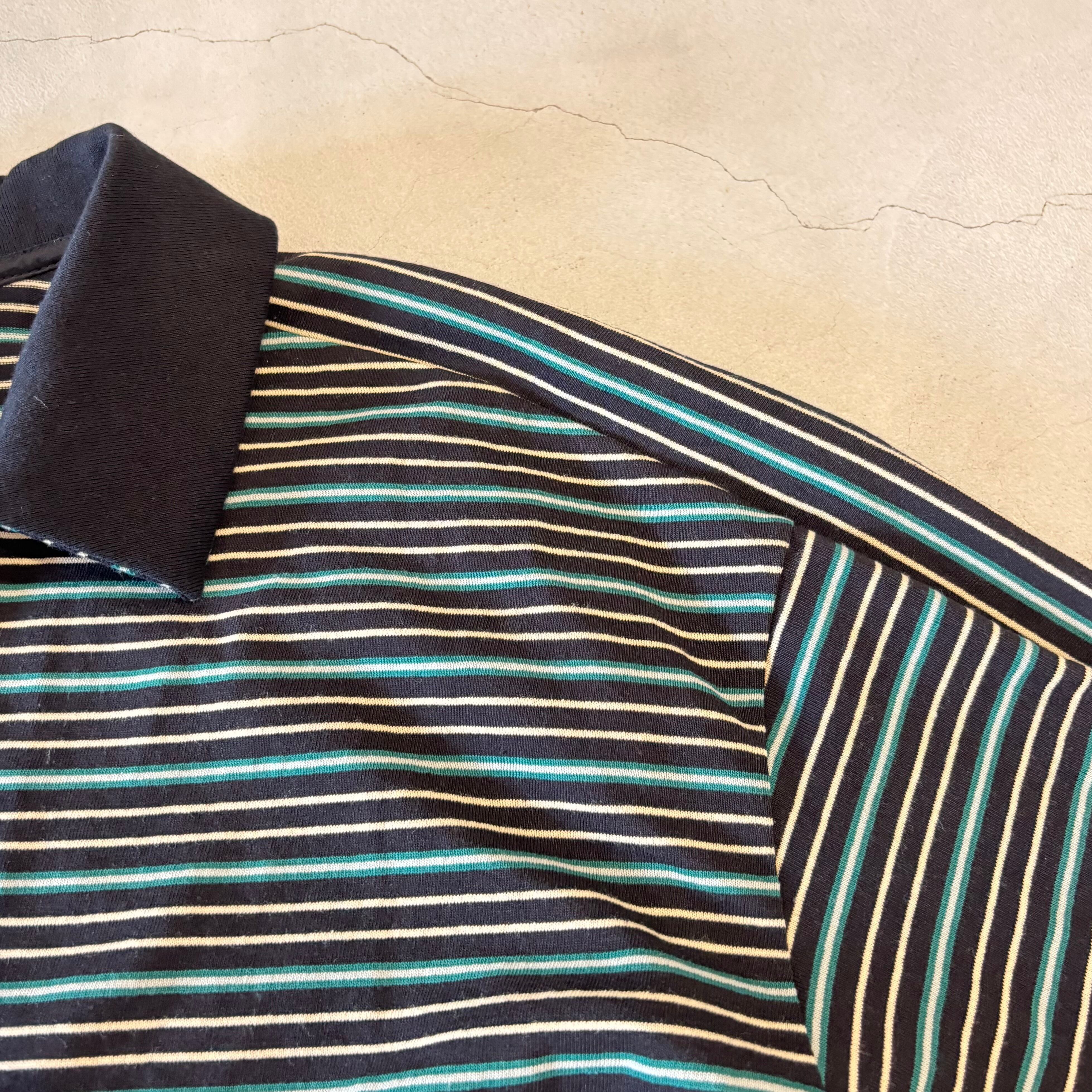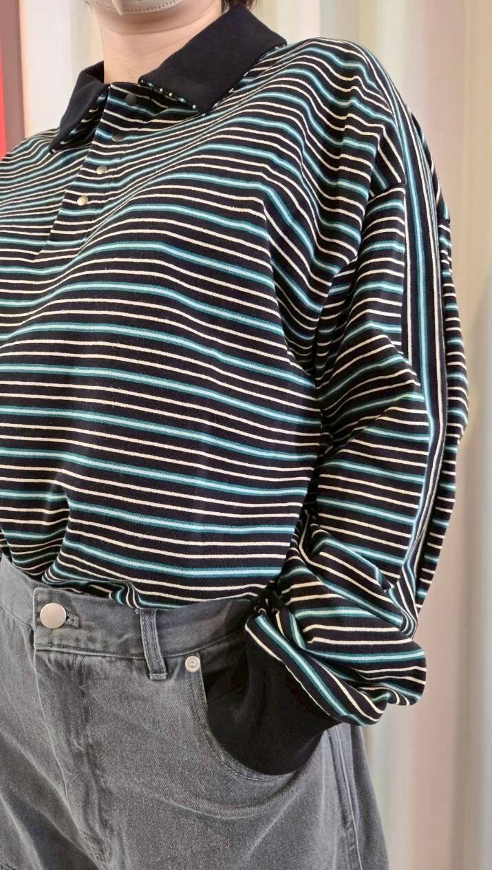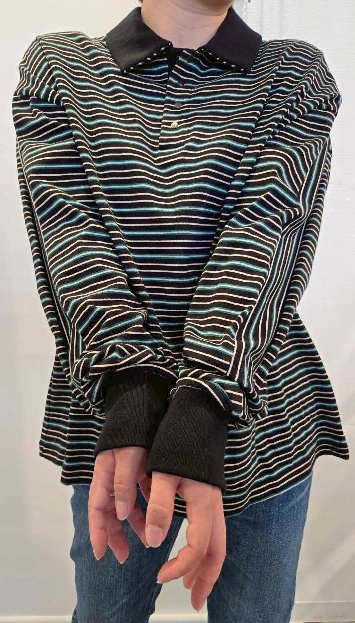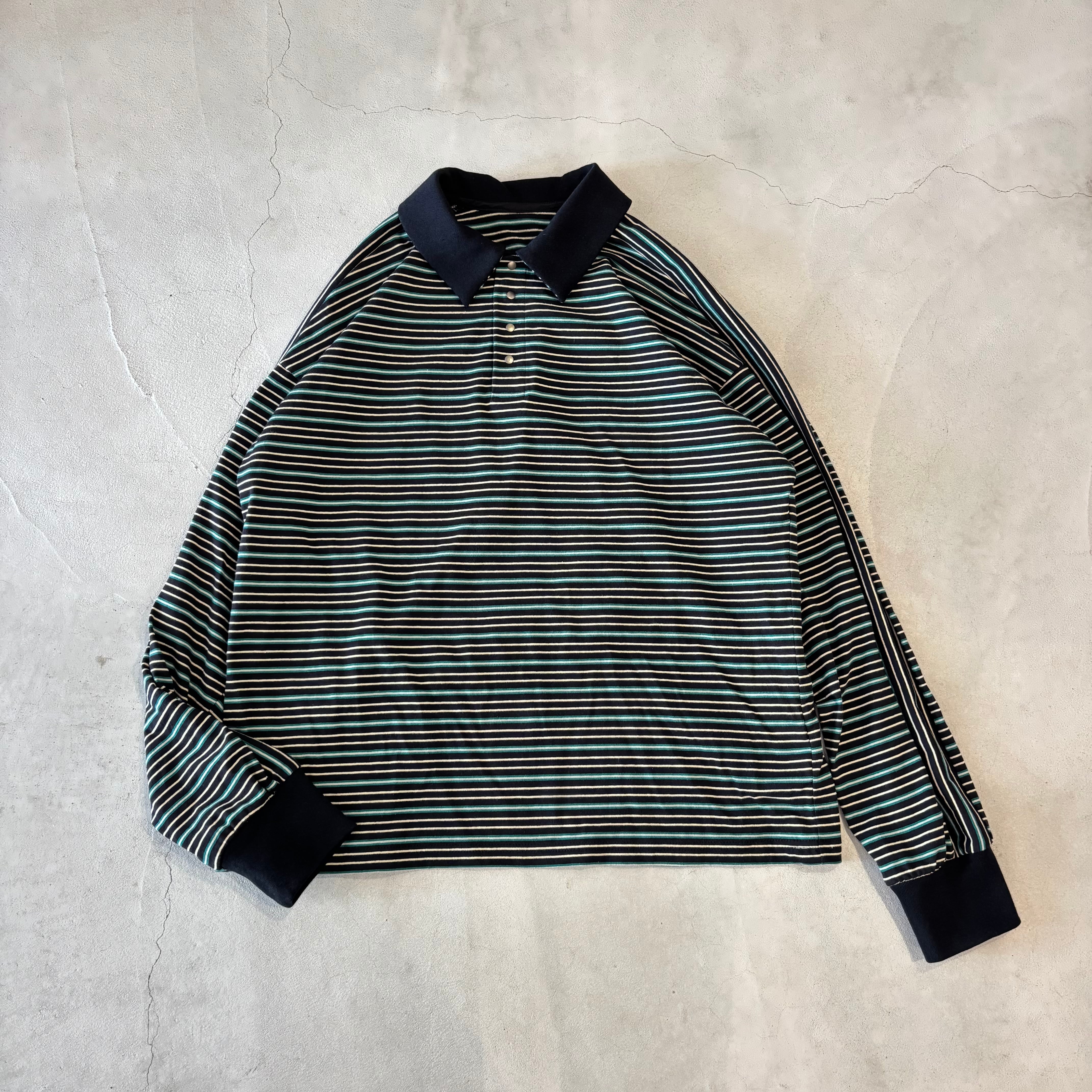 マルチボーダー天笠を使用したラガーシャツ。
