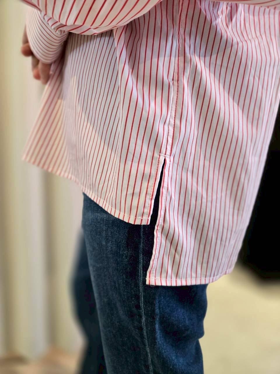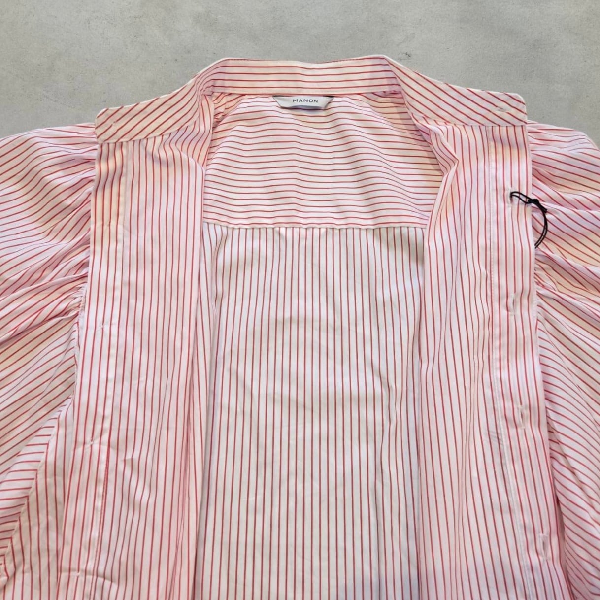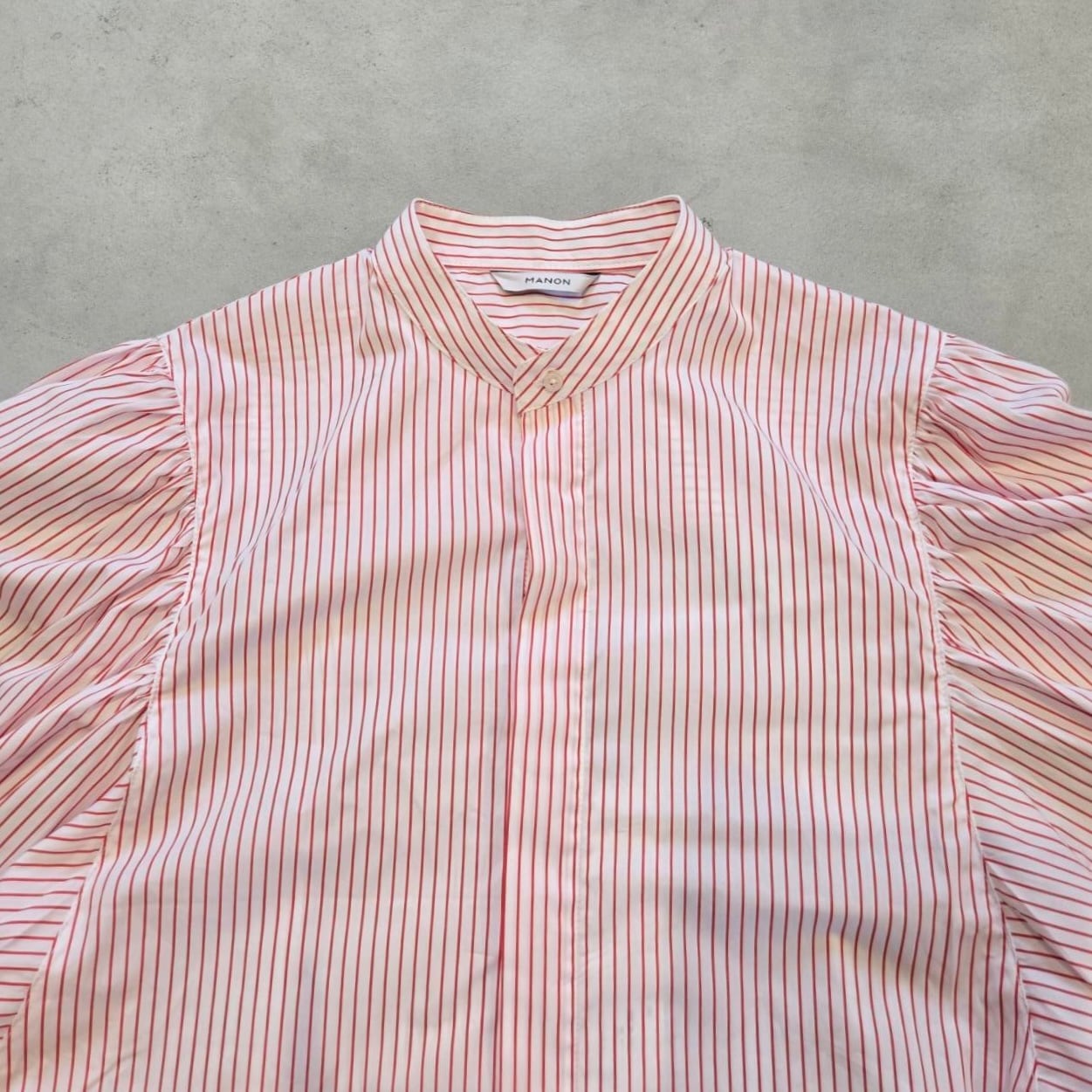 MANON(マノン)ホワイト/レッド 『GATHER SLEEVE BAND COLLAR SHT』 MNN-SH-302