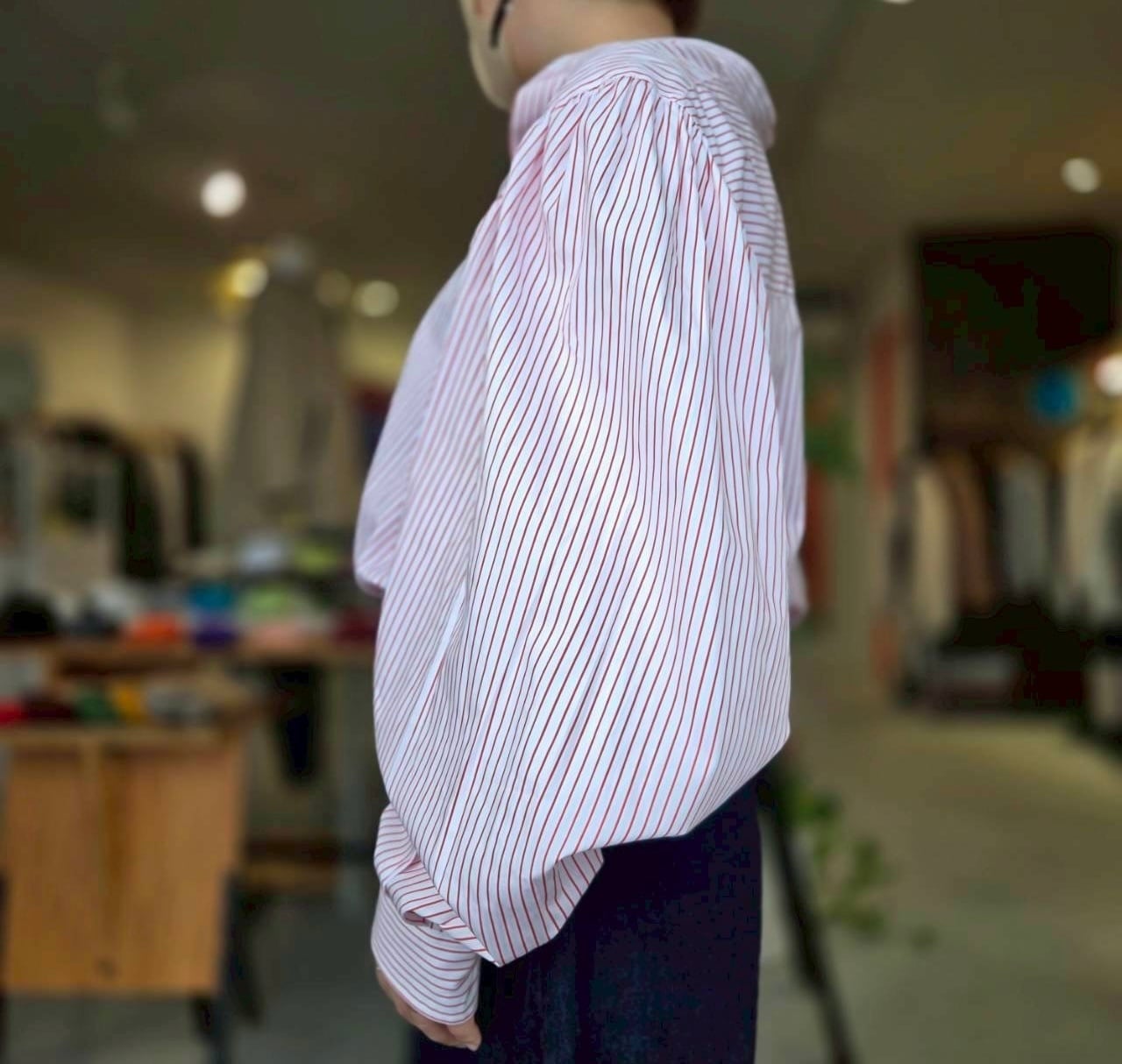 袖にギャザーを入れてぐっとアームホールを落とした袖のボリュームが、大人の抜け感と可愛さ叶えてくれるブラウスです。