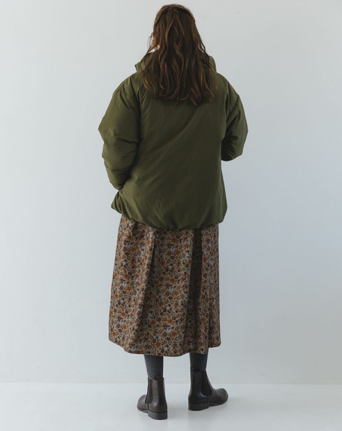 ボトムスを選ばない着丈です。