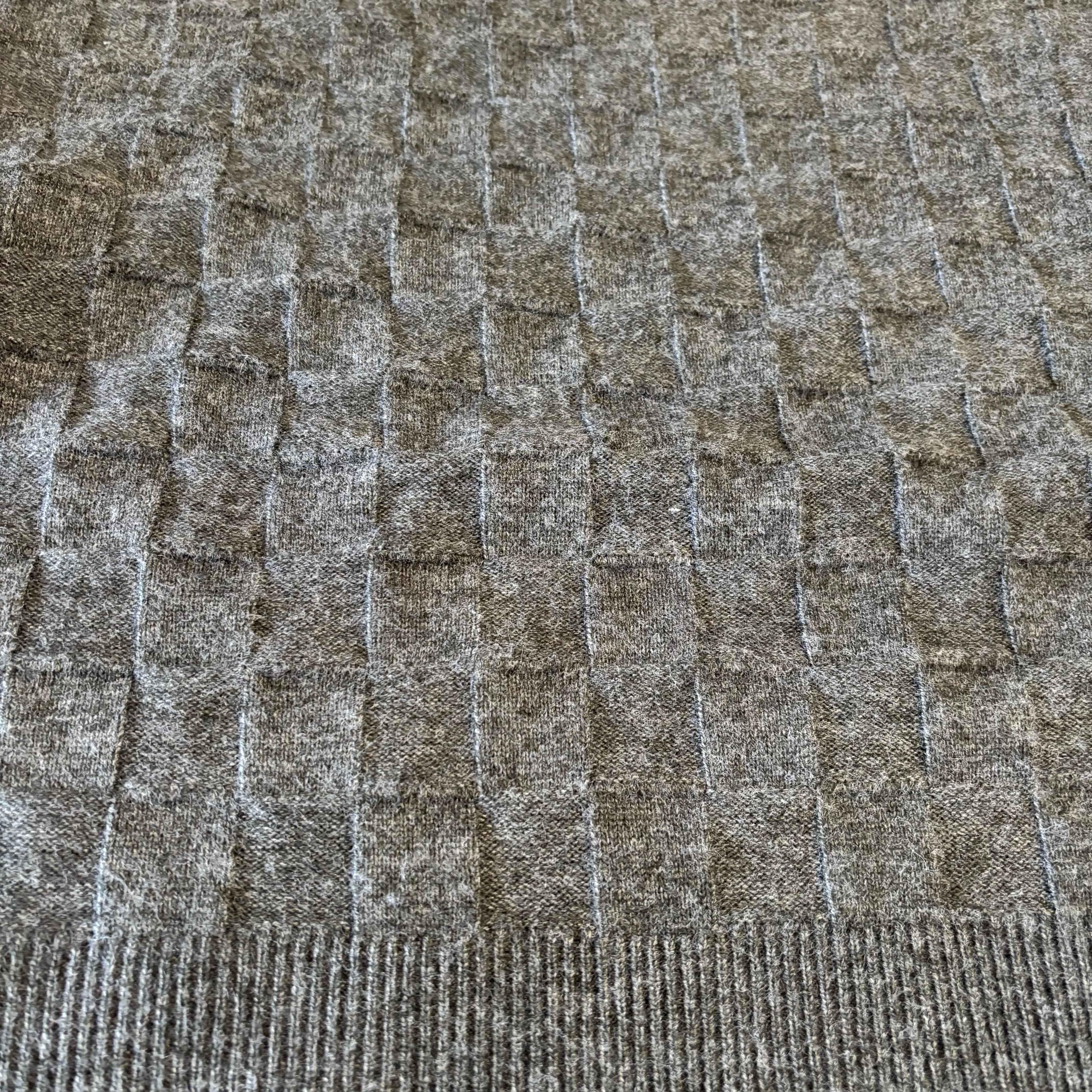 立体感のあるブロックチェック柄がインパクトのあるニットプルオーバー。