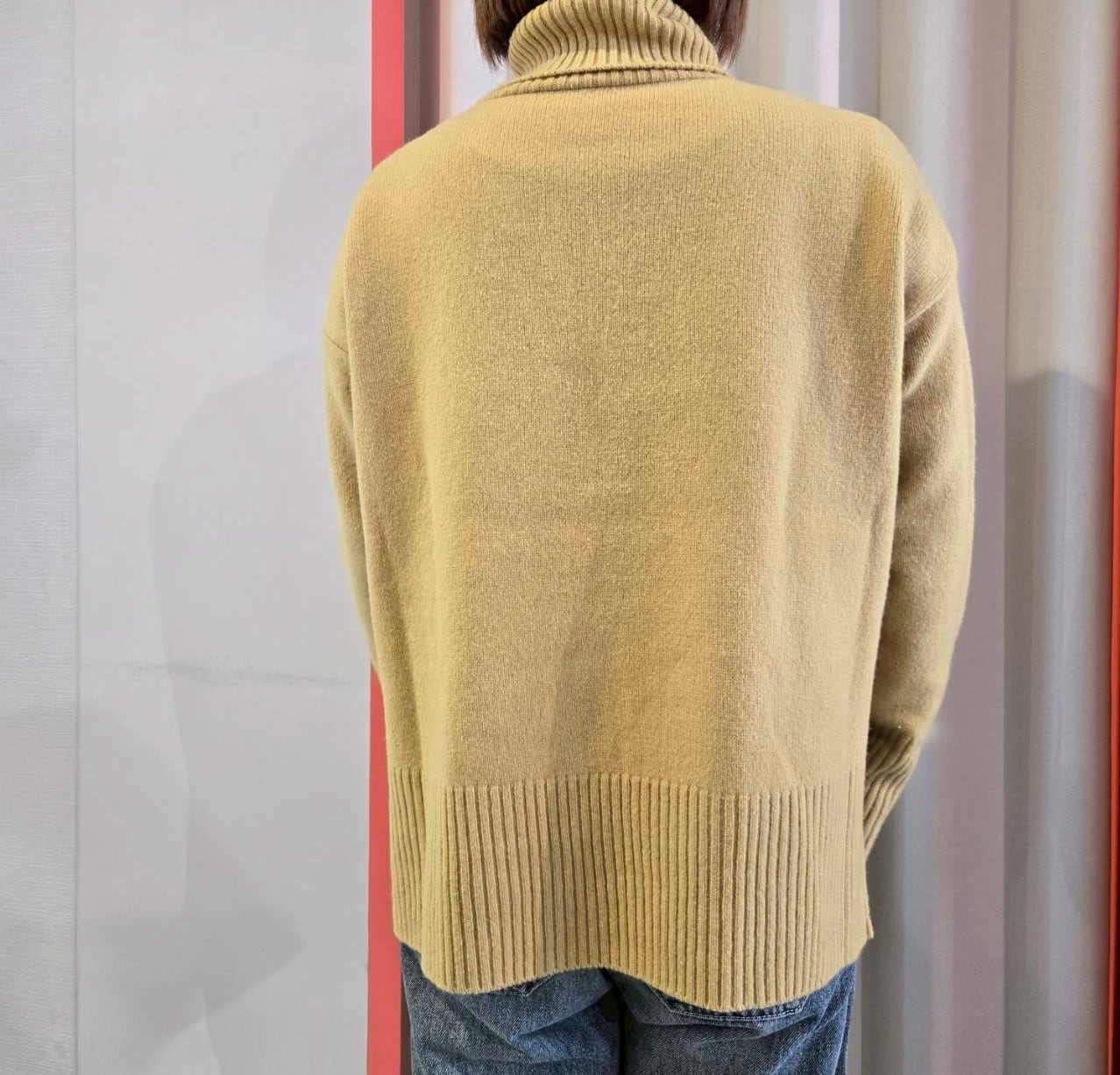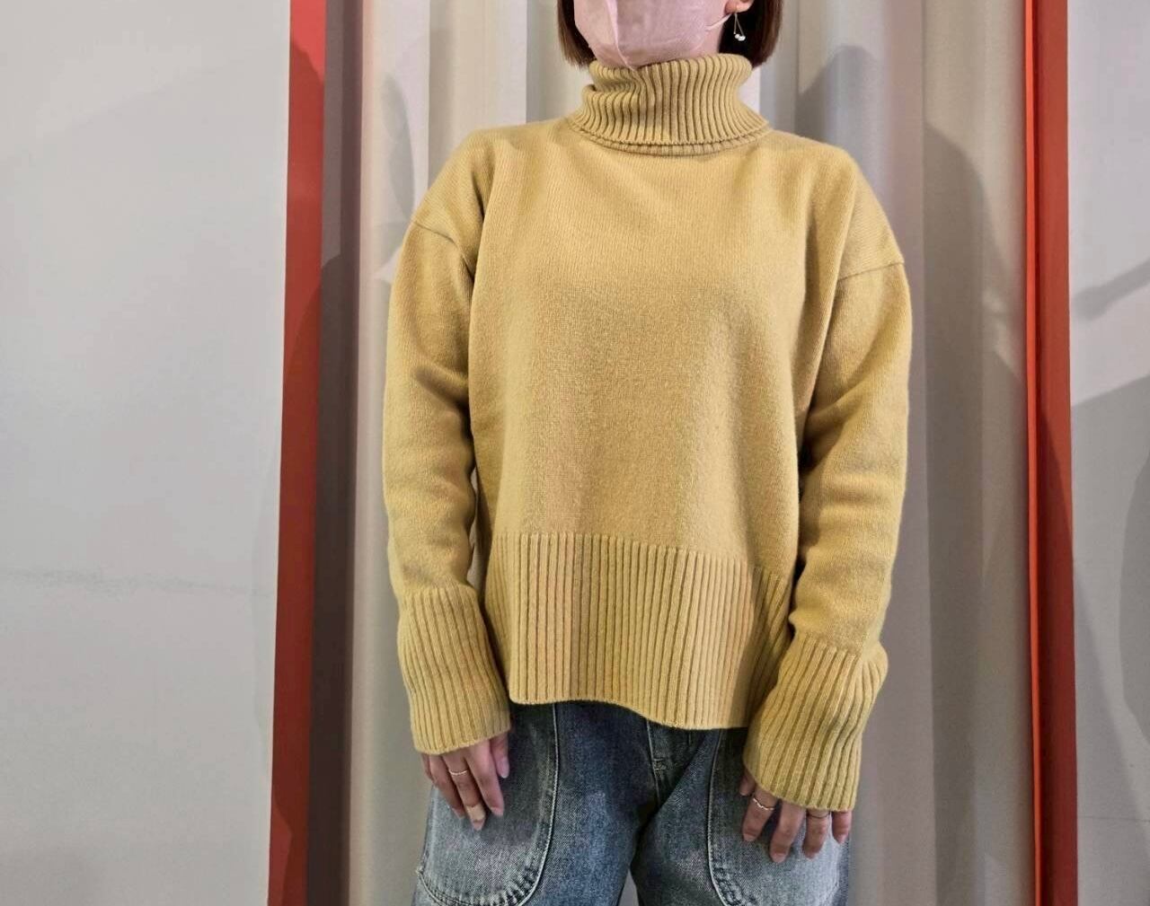 ゆったりとした着まわしやすいタスマニアラムコモドニットタートルです。手首と裾の太幅のリブがスタイルアップしてくれます。