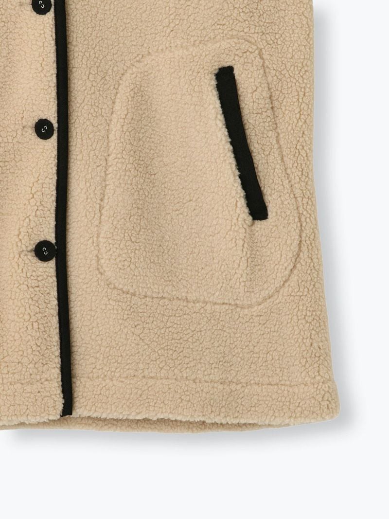 コーデュロイのトリミングとくるみボタンがアクセントです。