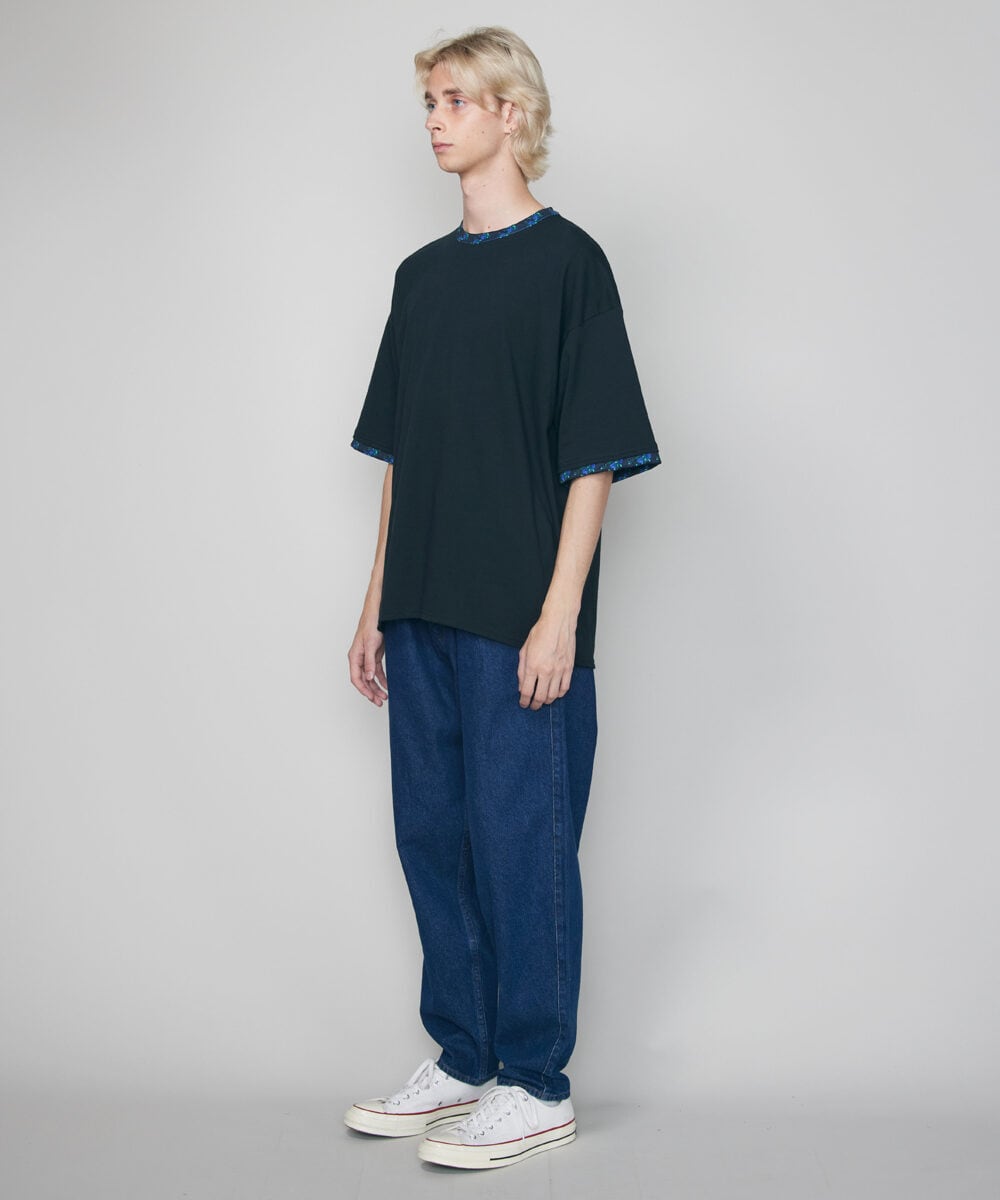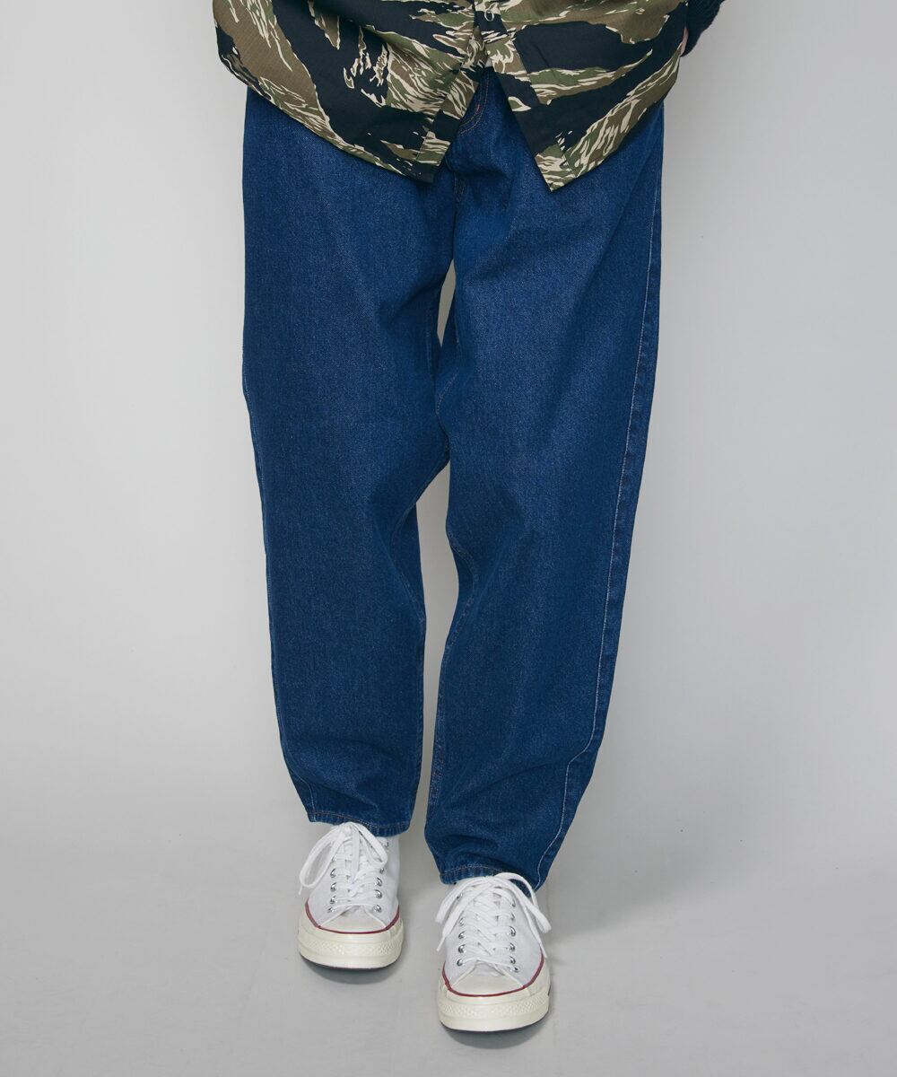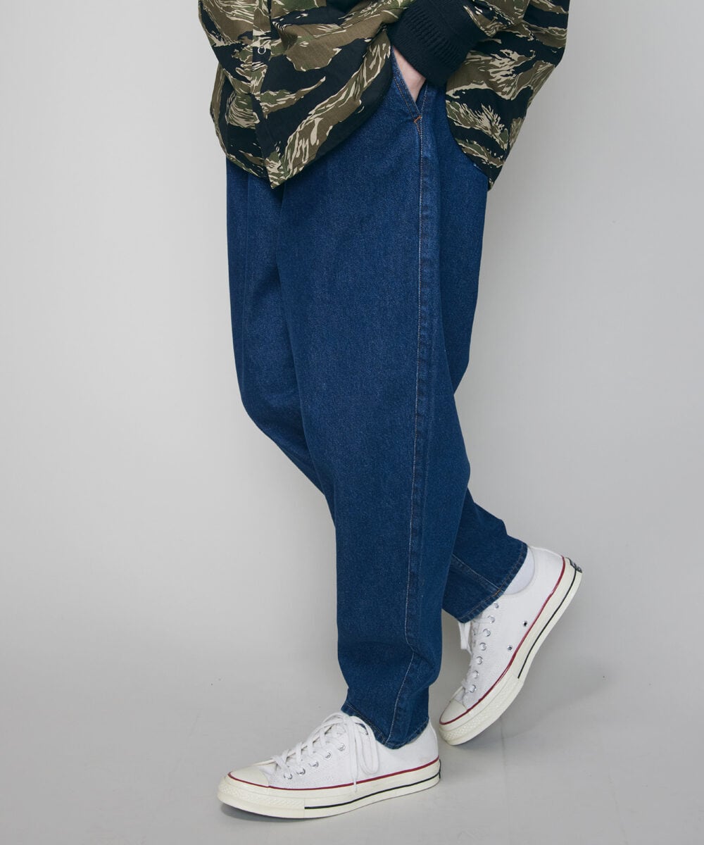 ワイドパンツのボリューム感とテーパードシルエットを組み合わせることで全体としてスッキリとした印象を与えてくれるレアセルオリジナルパターンのデニムパンツです。