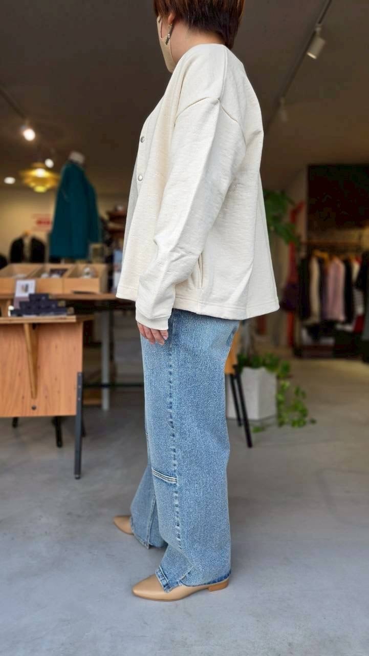 全体的にオーバーサイズのシルエットで、ウエスト位置はハイライズの設定になっています。