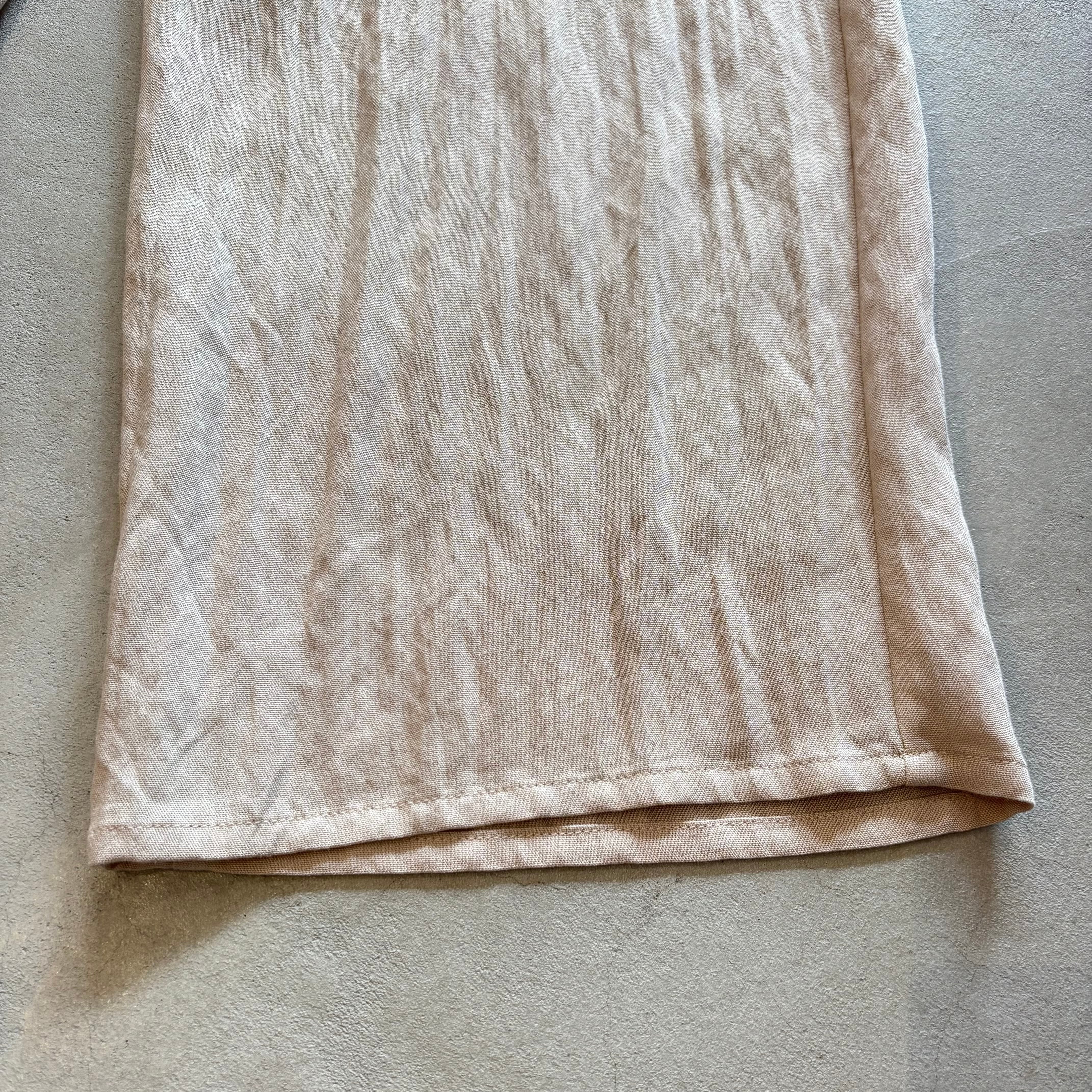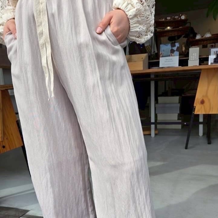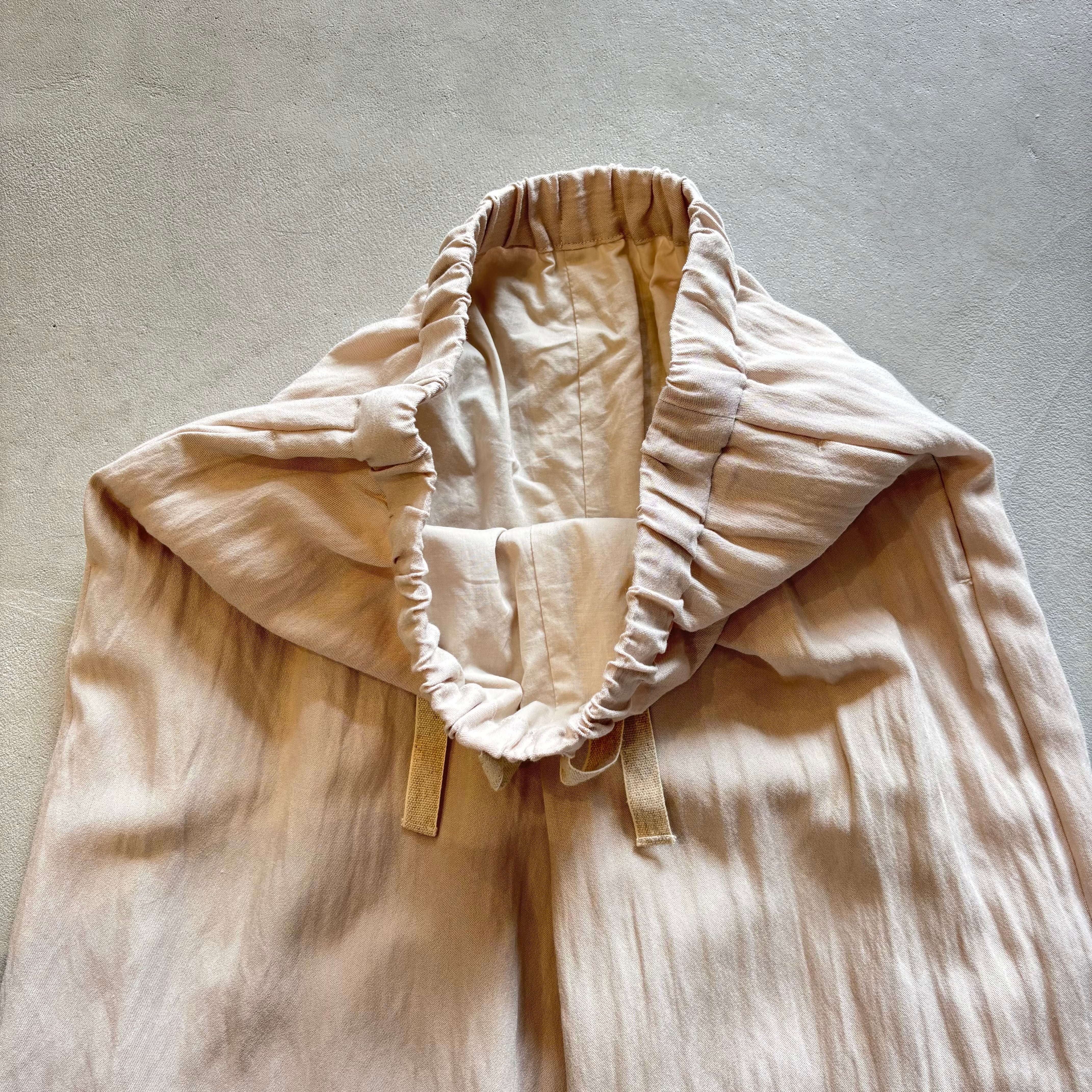 ウエストに通した麻混リボンで調節可能。