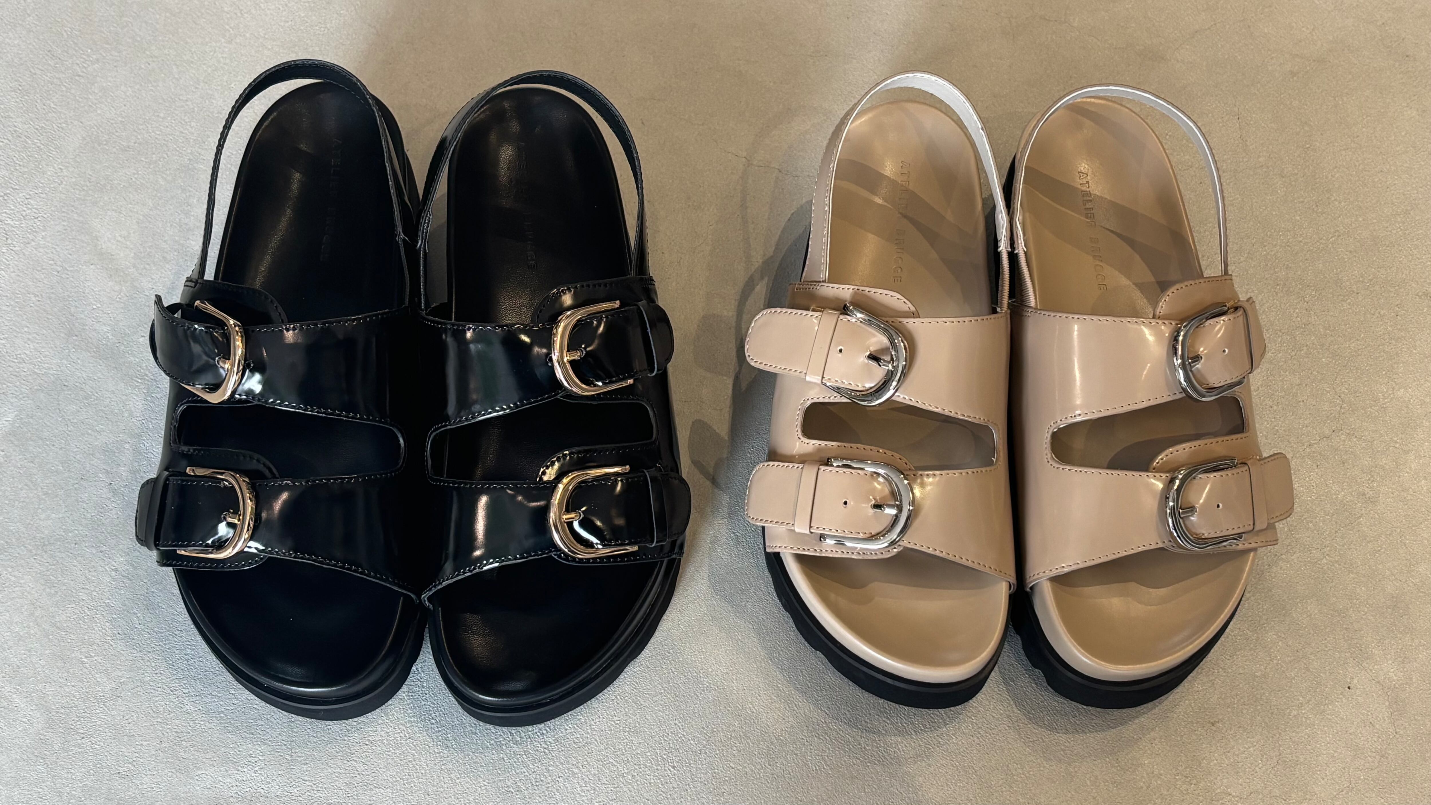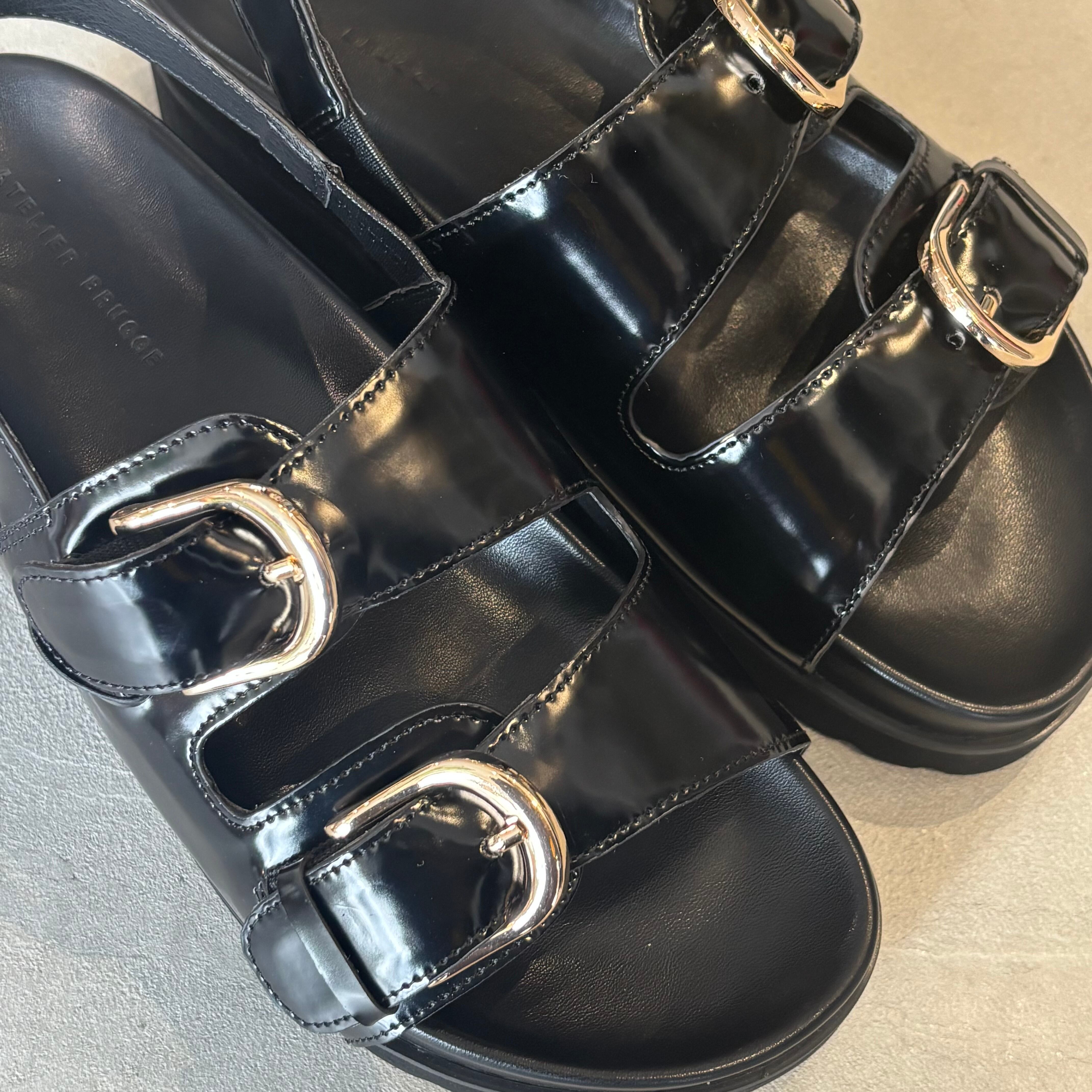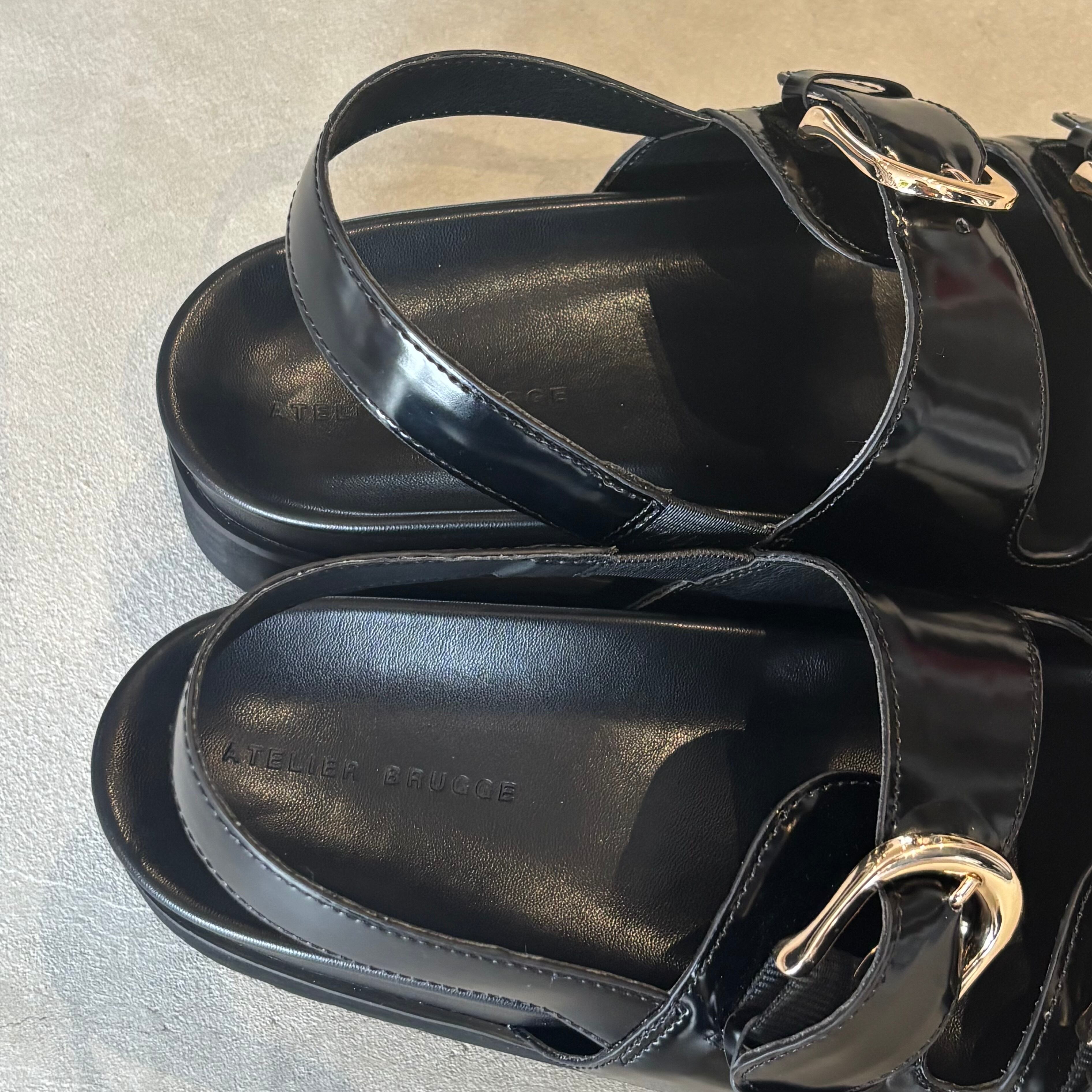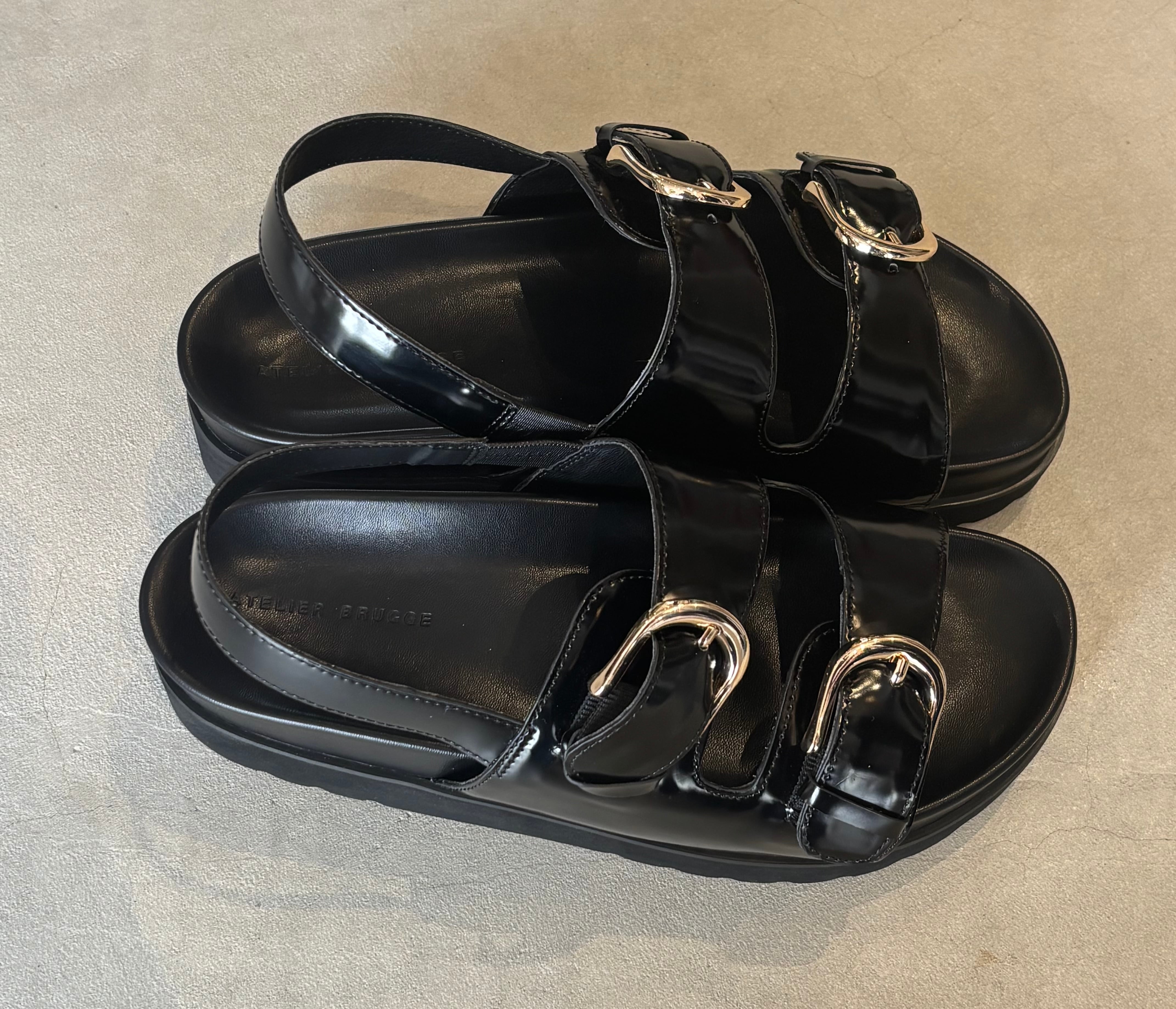 ATELIER BRUGGE(アトリエブルージュ)(ブラック)『W buckle back belt sandals』26ISM-08