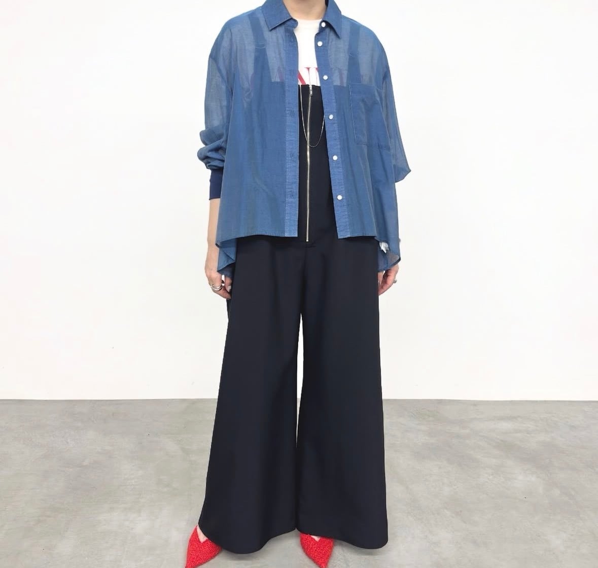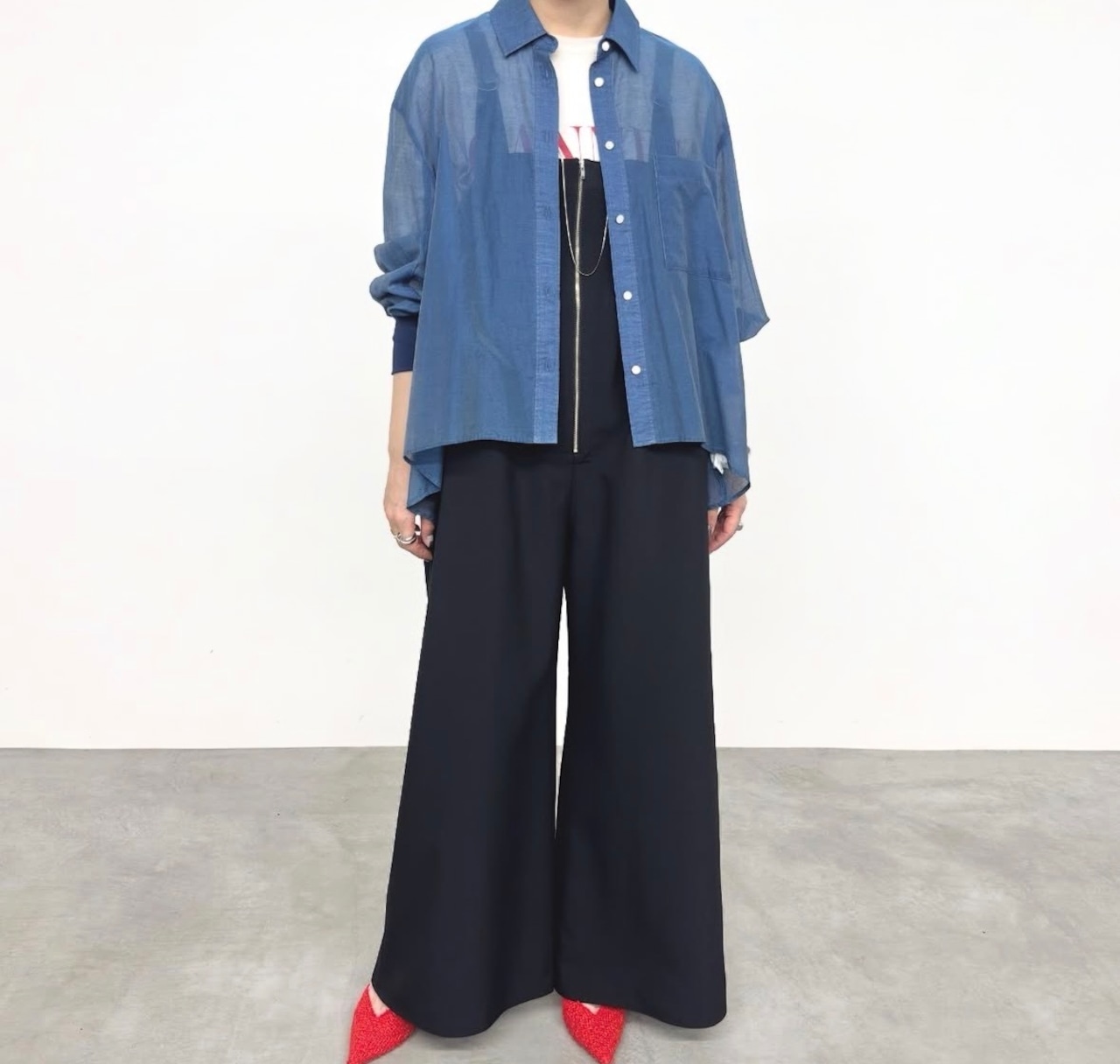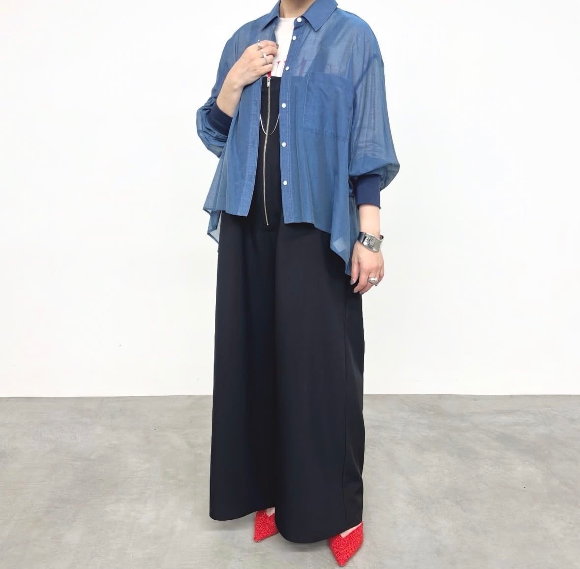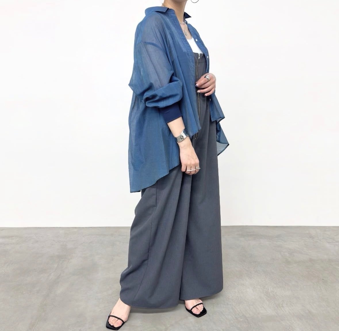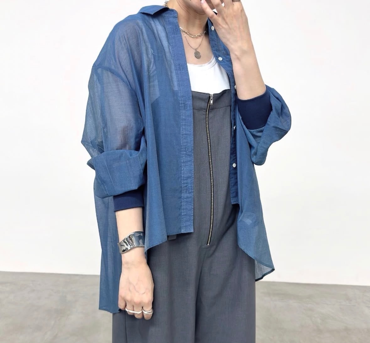 軽やかなシアー素材(サックス、ブルーのカラーはデニム素材です)