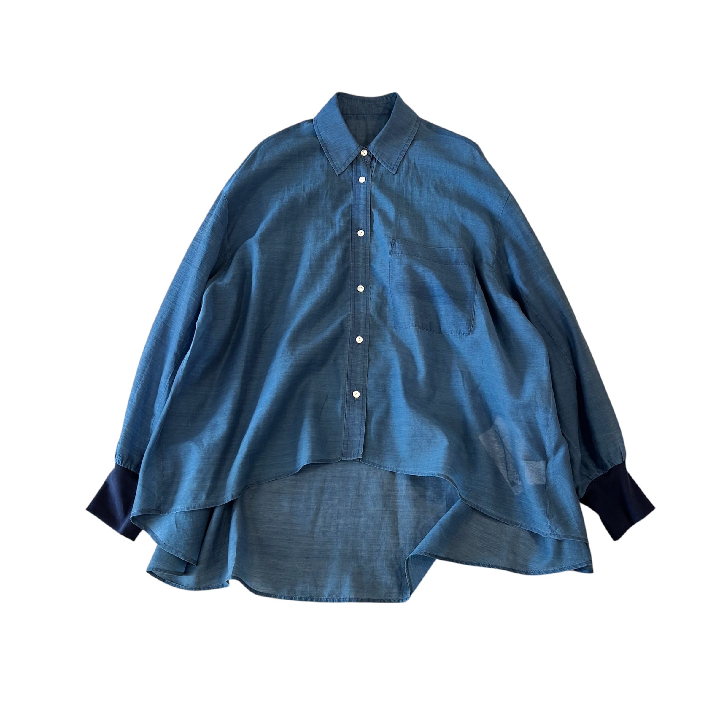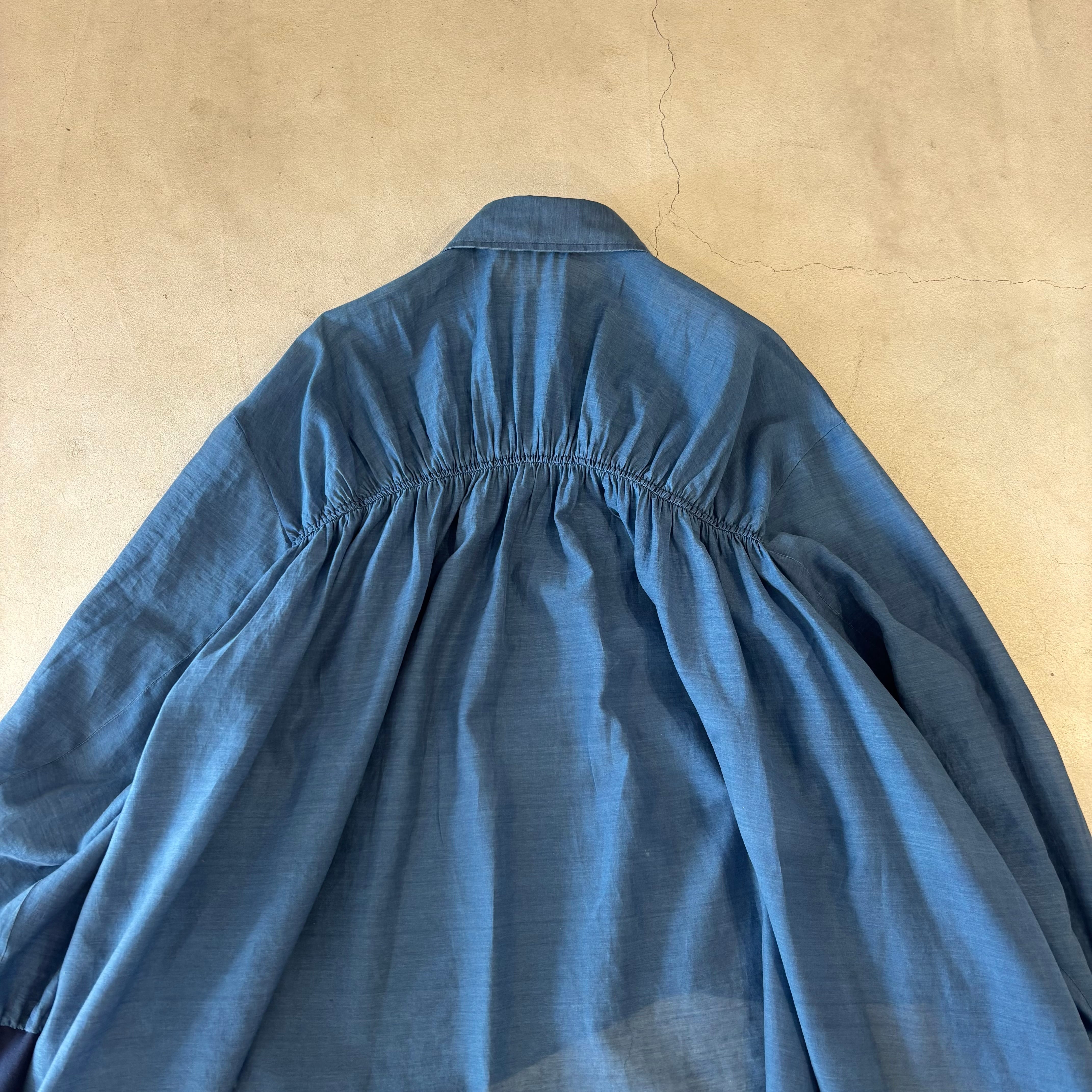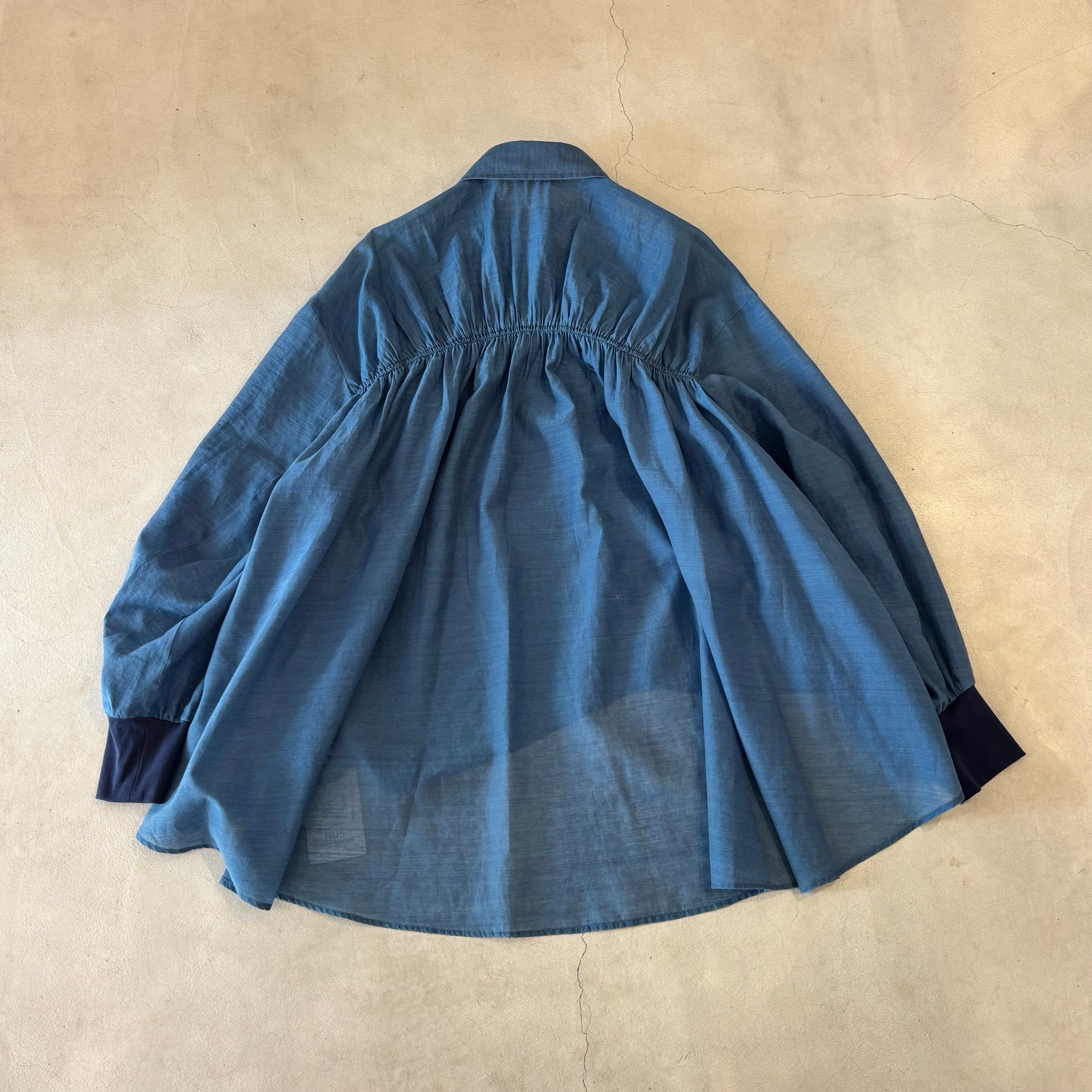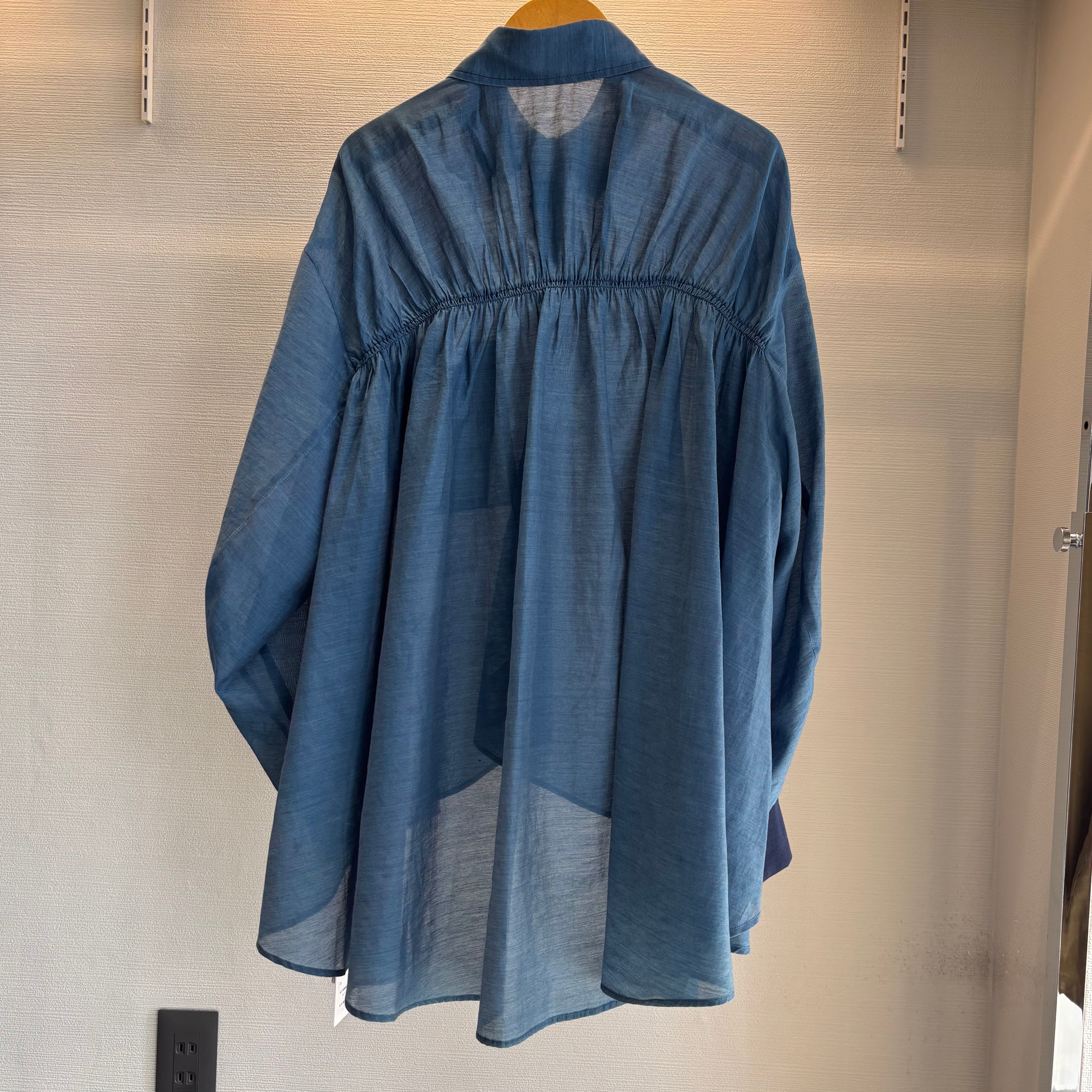 『ヴィンテージシアー/シアーデニムバックギャザーフレアシャツ)(ブルー)』 NUS ヌース 612-35005