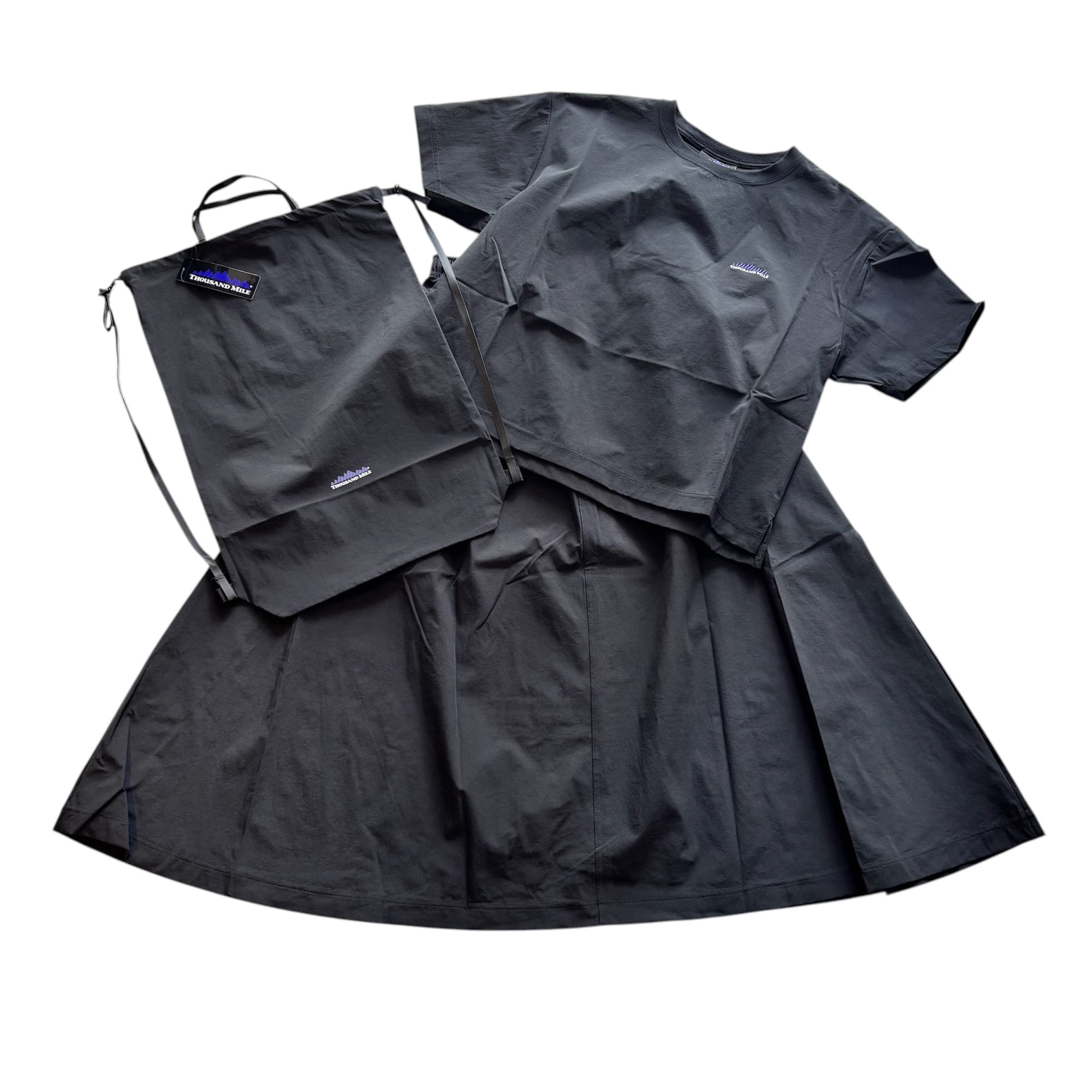 「おしゃれ・機能性・着心地」をすべて叶える、THOUSAND MILEの3点セットアップが登場!Tシャツ・スカート・ナップザックがセットになった、毎日使える万能アイテムです!
