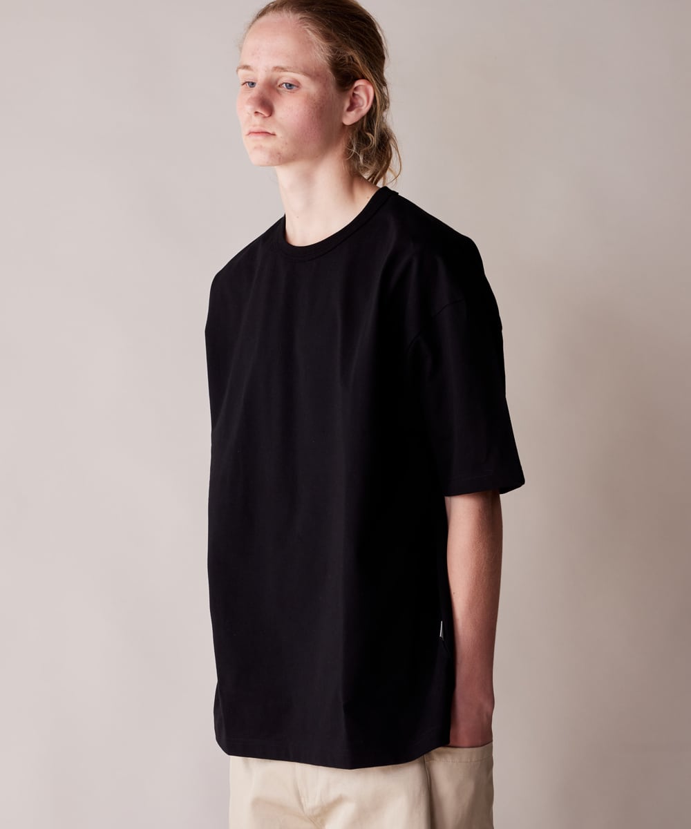 身幅にゆとりを持たせ、肩線を落として肩が張らないデザインにし、ボディーラインを拾わないユニセックス対応のリラックスフィットとなっています。