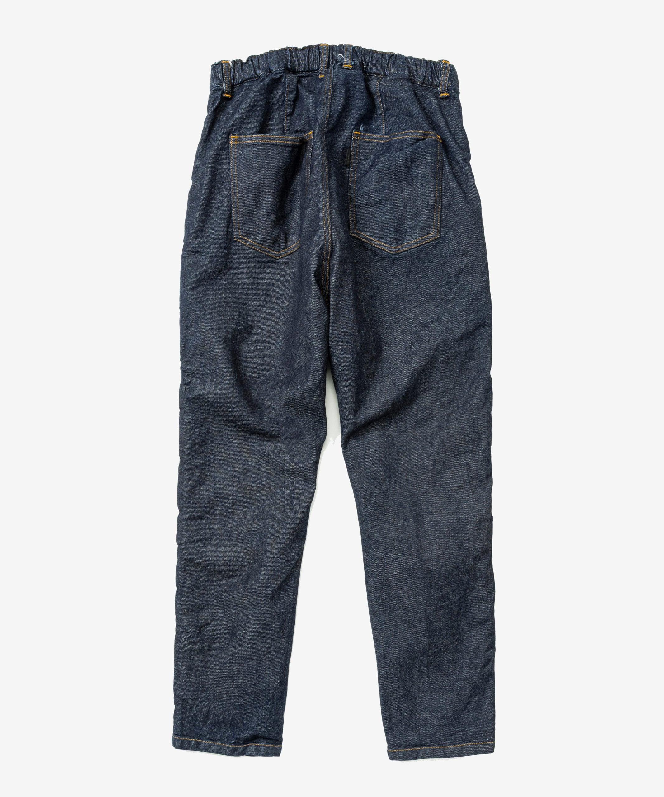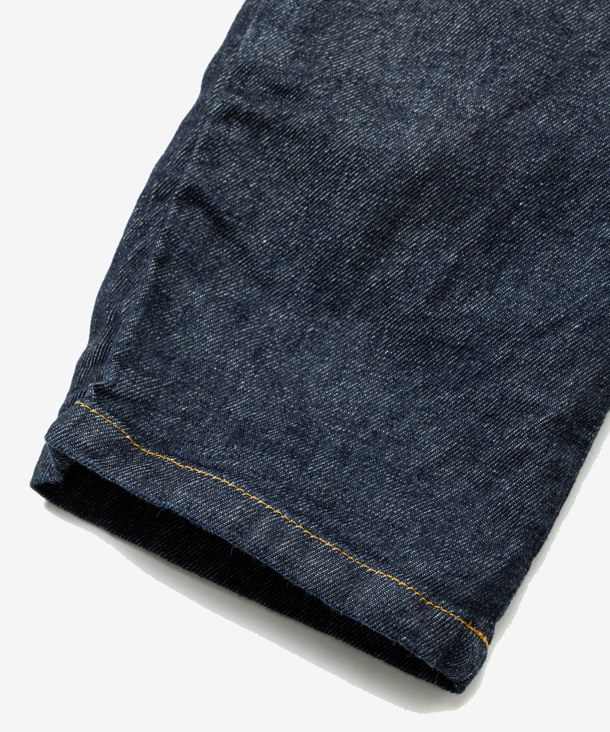 綿デニム特有のしっかりとした風合いに、わずかな伸び感が加わることで、動きやすさと快適な穿き心地を実現しています。