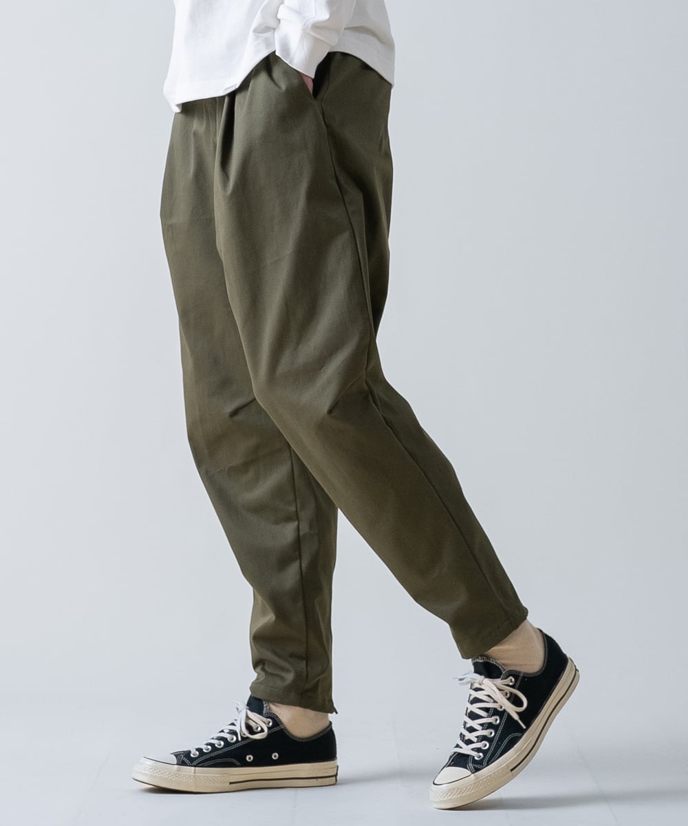 生地には強度に優れたCORDURA®ツイルを使用し、程よいハリと耐久性を備えながらも、動きやすい柔らかさを持った仕上がりになっています。ウエストまわりにはゆとりを持たせ、深めのタックによって自然な立体感が生まれるデザイン。