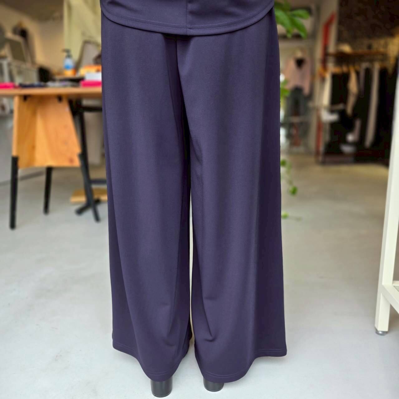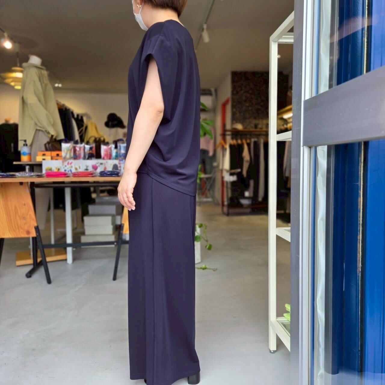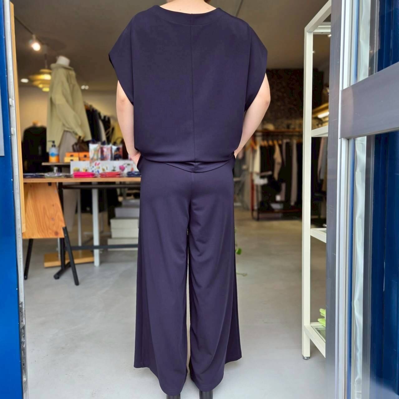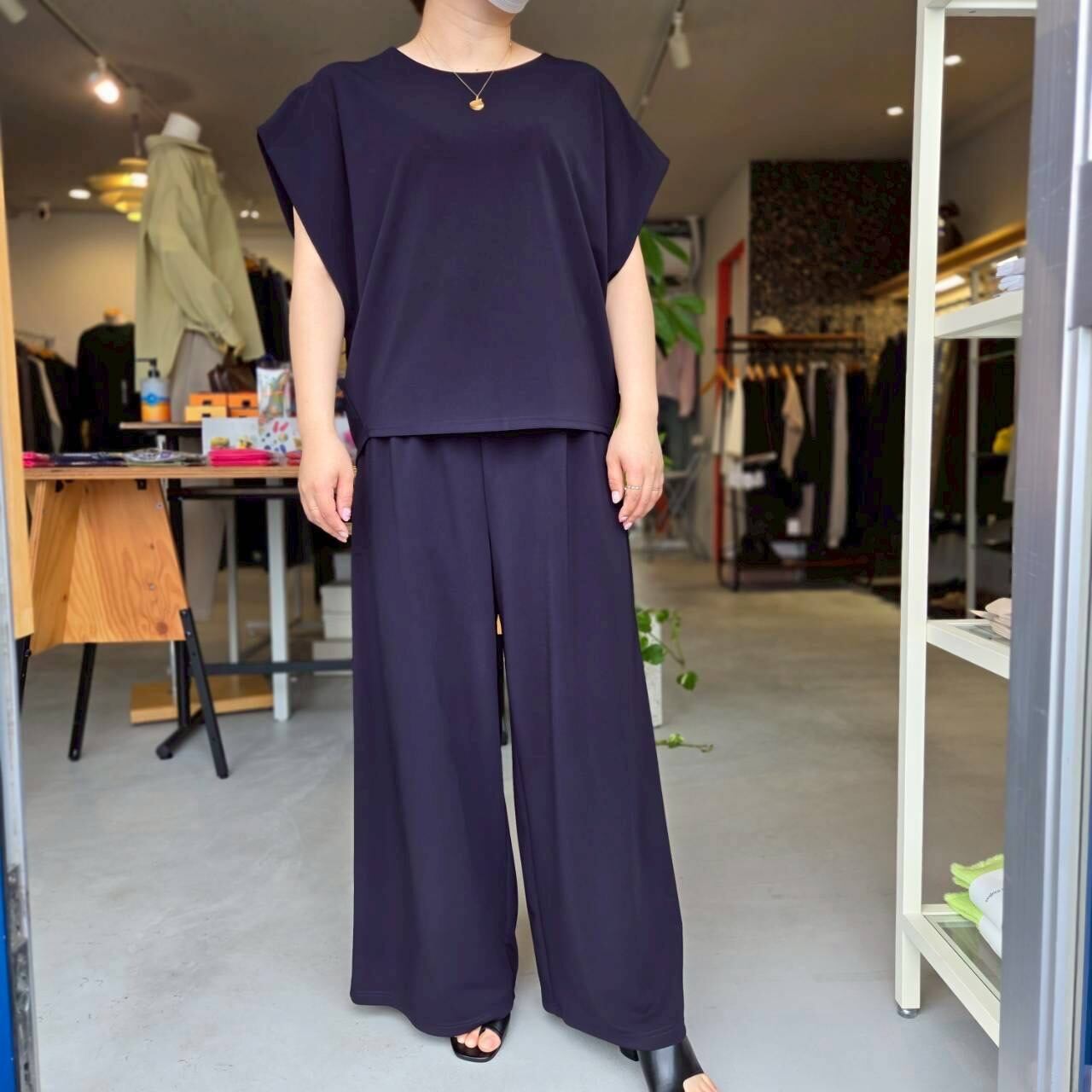 QTUME(クチューム)『マットストレッチポンチリラクシーワイドパンツ』/610-26064/ネイビー/日本製/ポリエステル98% ポリウレタン2%