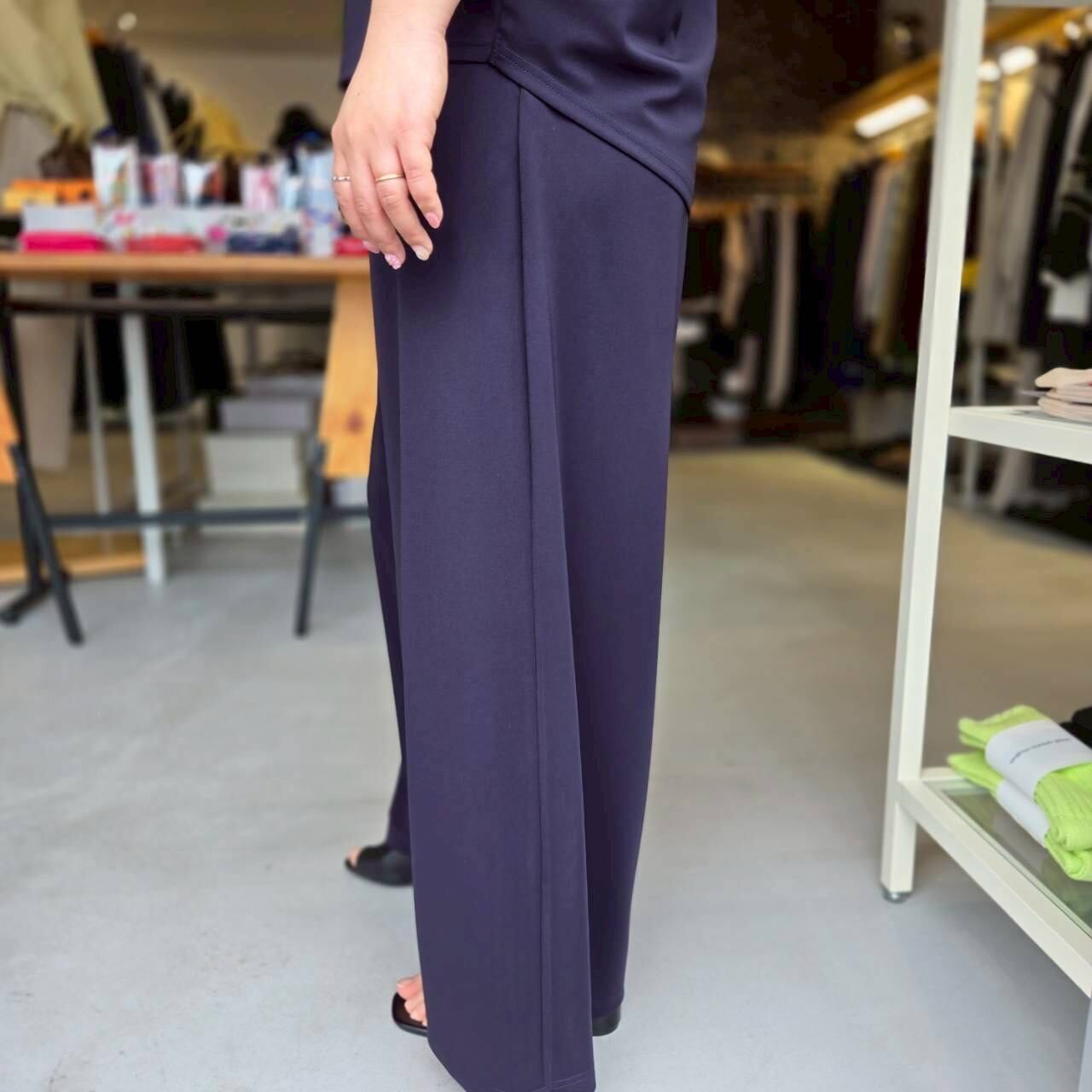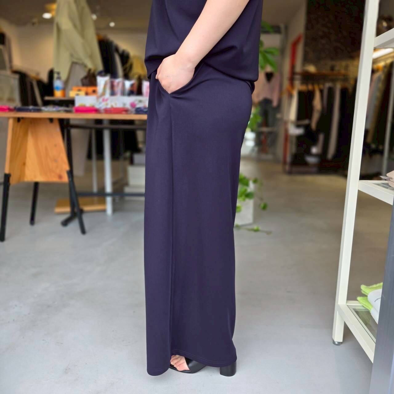 【PRESSO&KLOSEは、QTUMEの正規販売店でございます。安心してお買い求めいただけます】QTUME(クチューム)QTUME(クチューム)『マットストレッチポンチリラクシーワイドパンツ』/610-26064/ネイビー/日本製/ポリエステル98% ポリウレタン2%