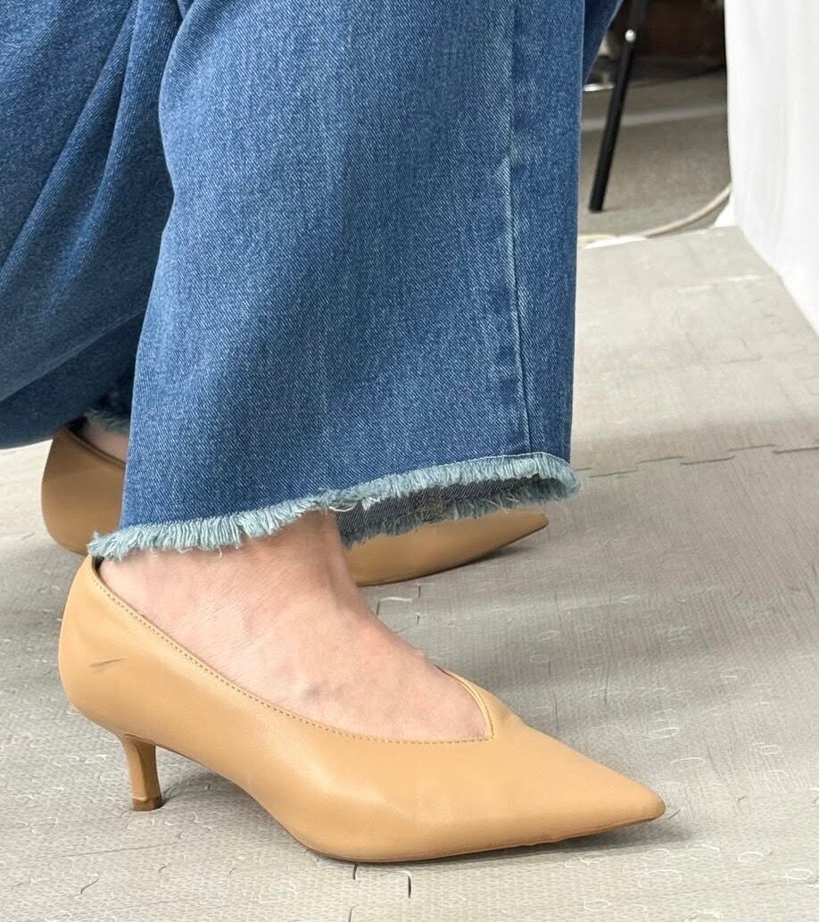 前振りの脇線や膝当たりのダーツ設計により、美しいラインを演出します。