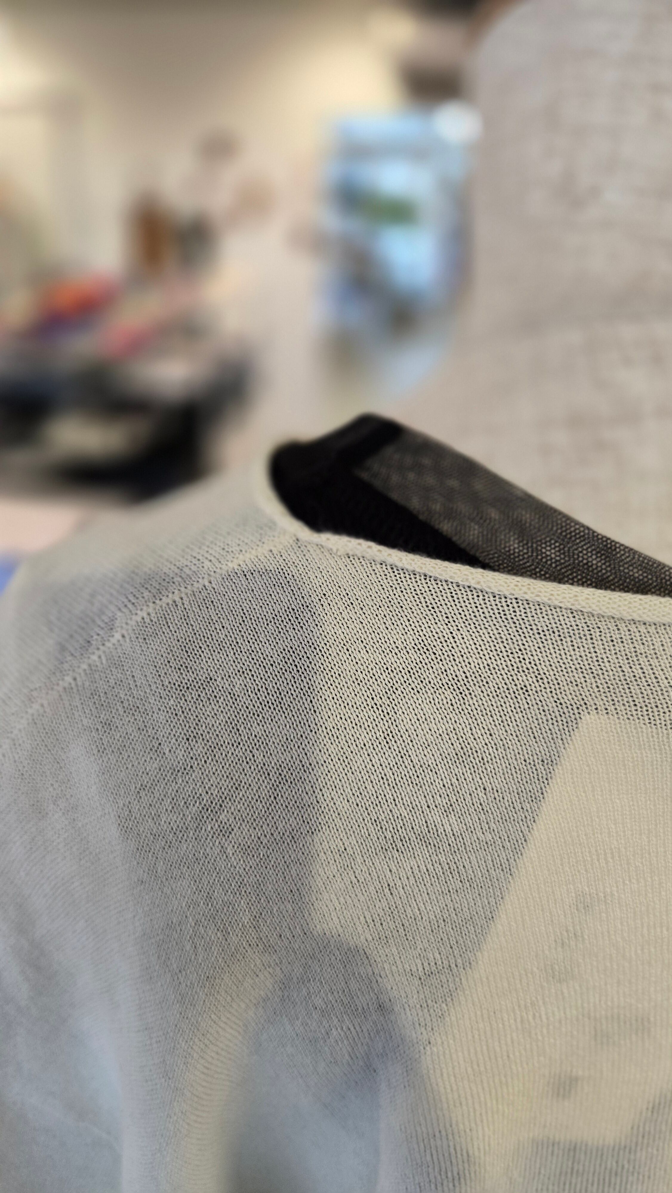 着丈も程よく長いですが、ほんのりシアー感があるので、野暮ったくなりません。