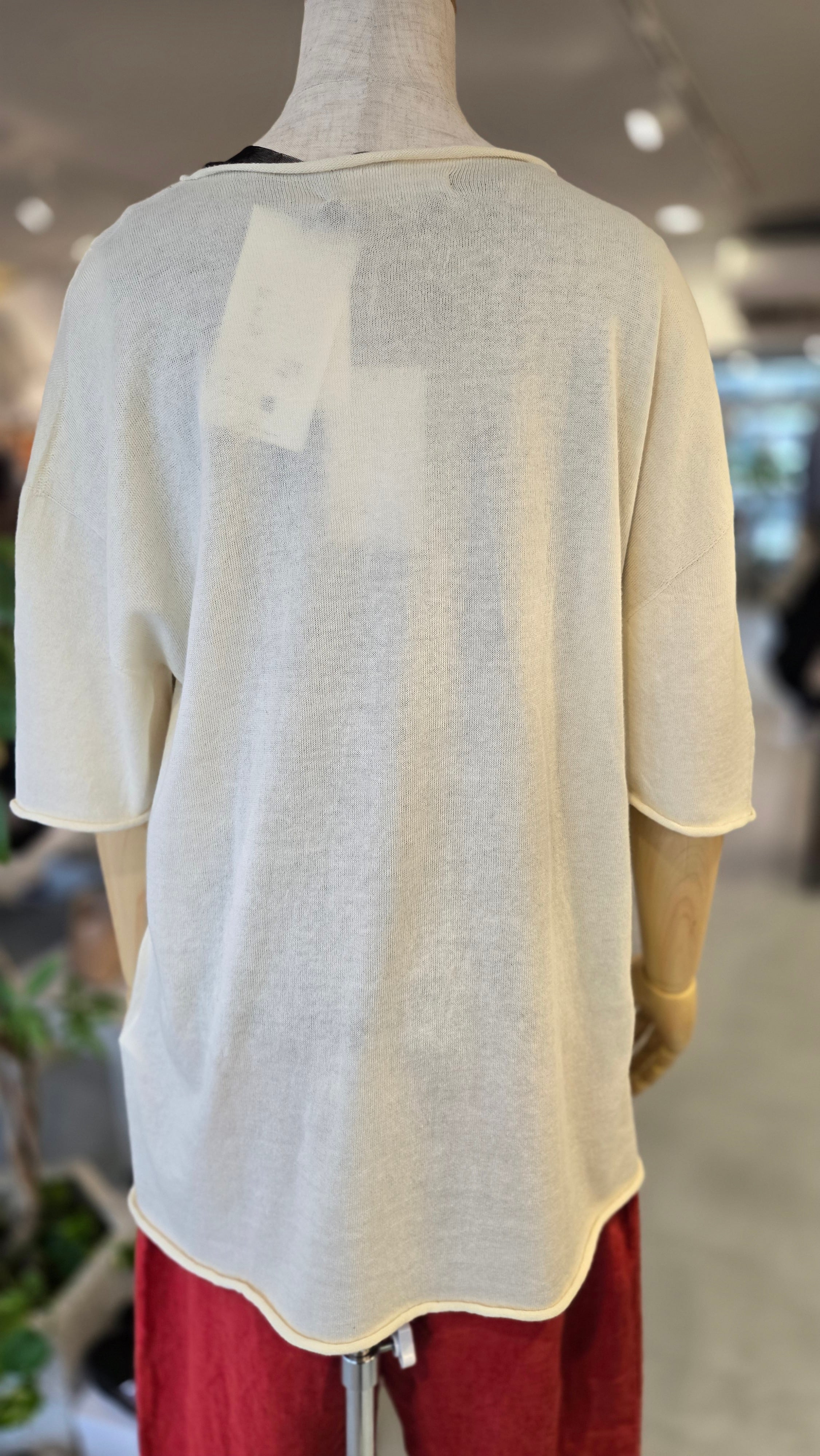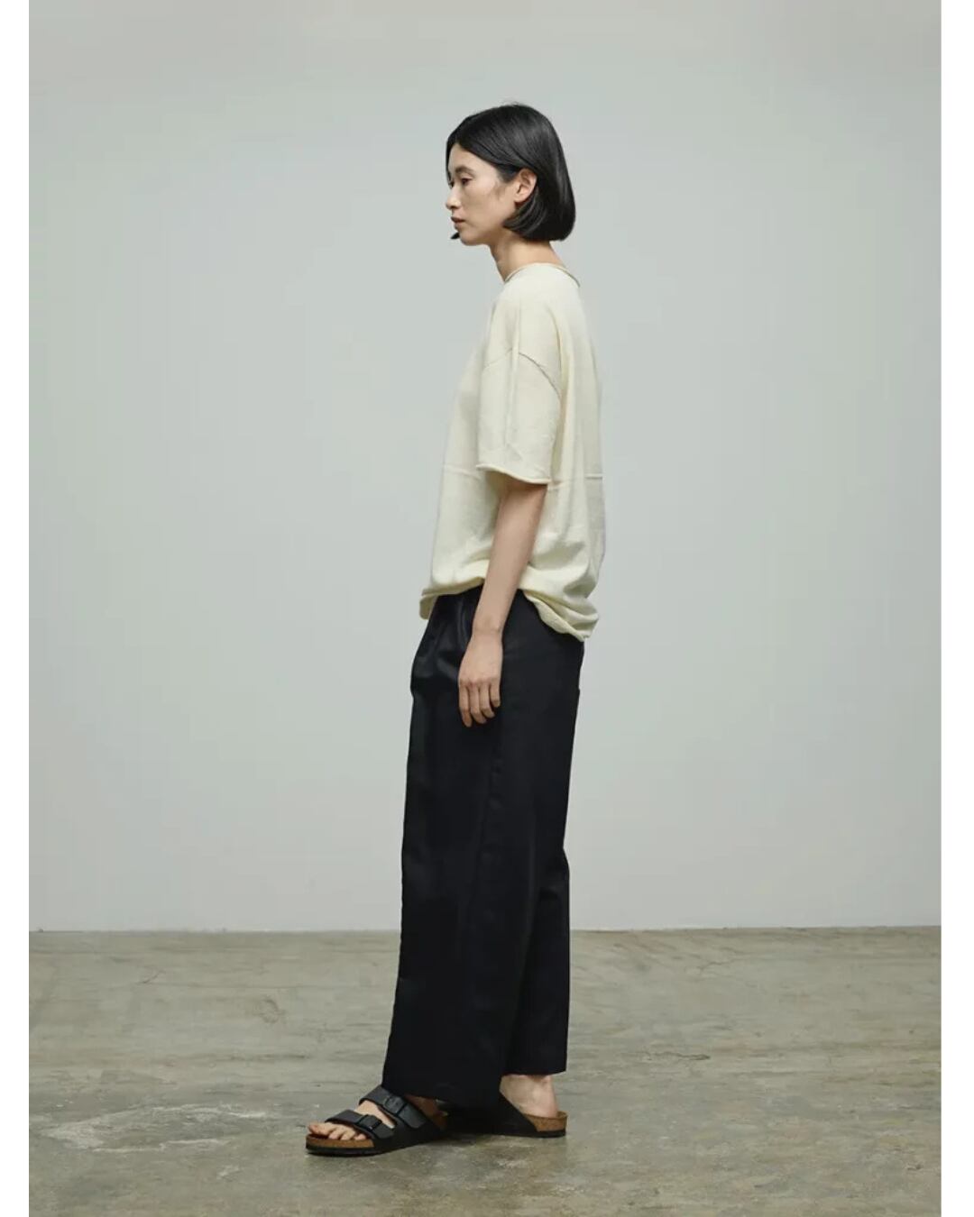 ニコルソン&ニコルソンのアイビートップは、Tシャツのように快適に着用できるようデザインされた、ゆったりとしたシルエットの半袖ニットプルオーバーです。体にまとわりつくことなく、優雅なドレープを描きます。全体に施された構造により、シームレスでストレスフリーな着心地を実現しています。