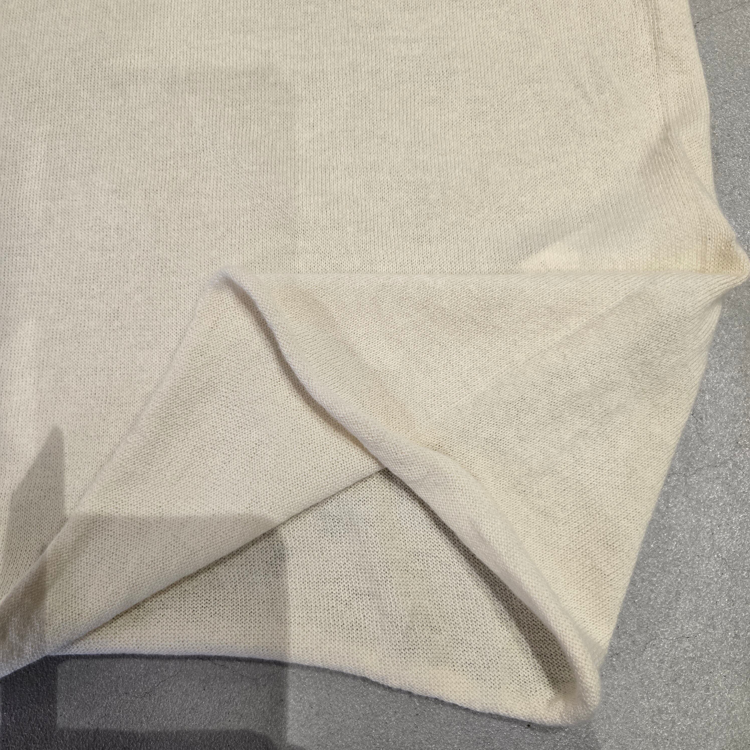 極上の柔らかさで、首回りはやや広めのシルエット。