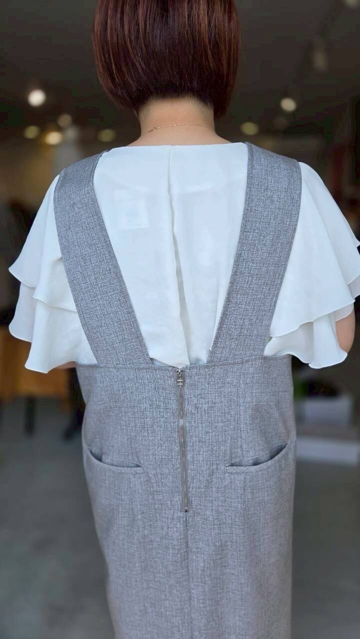 ヒップと二の腕を自然にカバーしてくれるシルエットでシワが目立ちにくいイージーケア性も優秀なポイントです。