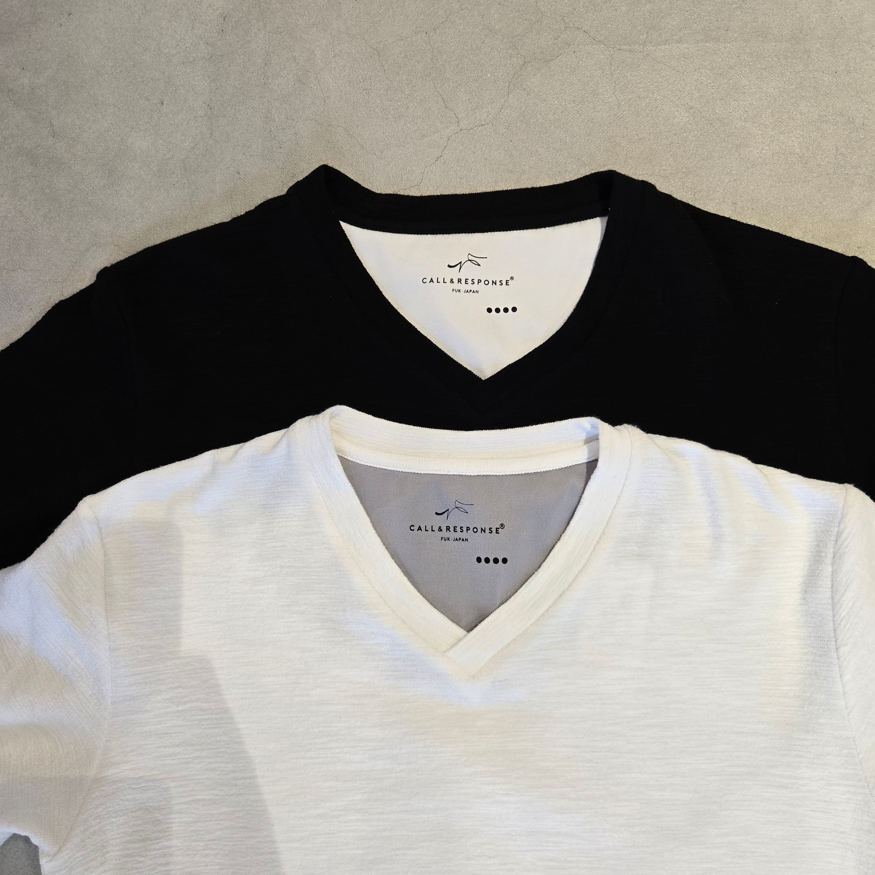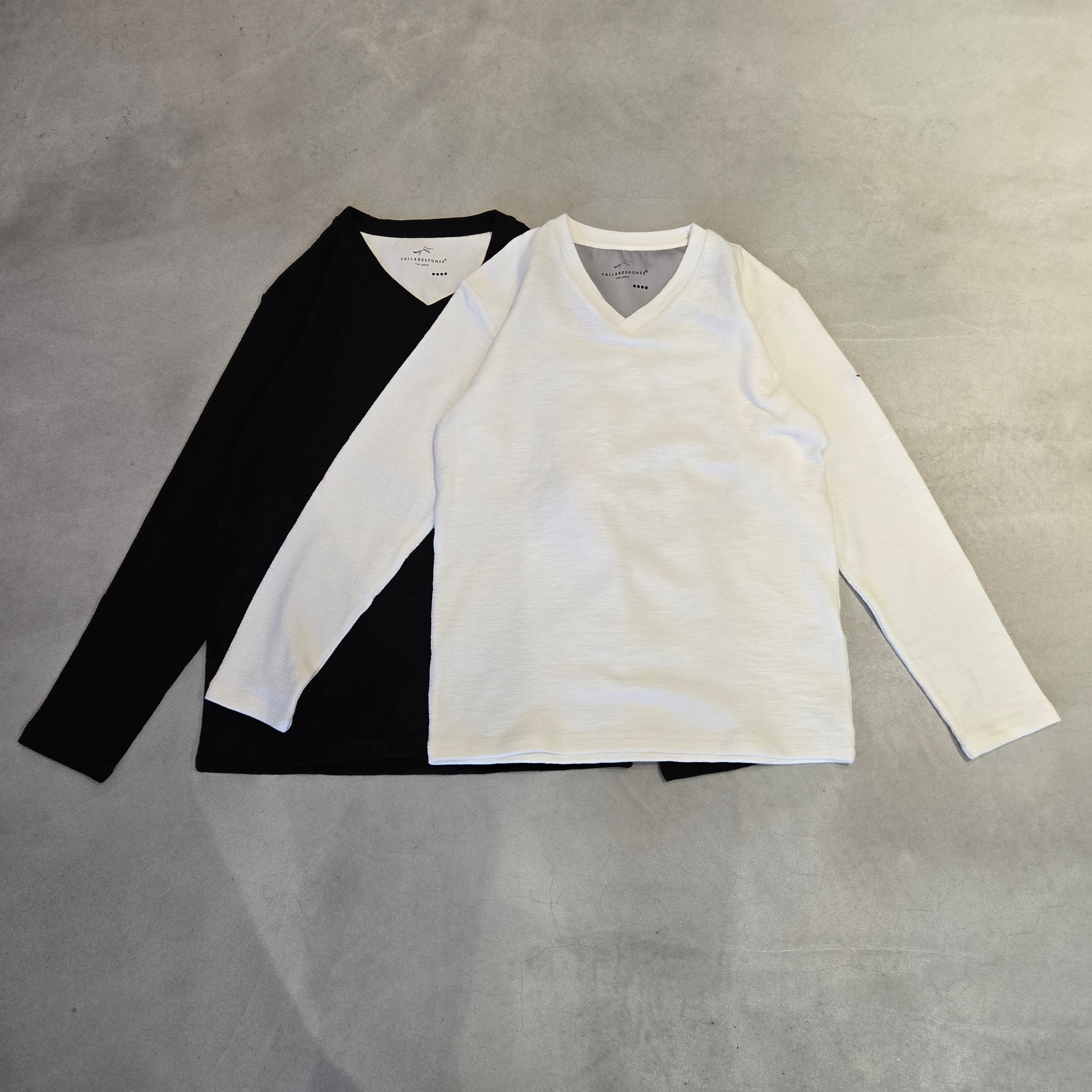 CALL&RESPONSE コールアンドレスポンス『メランジVネック長袖Tシャツ』233-1321-04/ホワイト/ブラック/サイズ4/Lサイズ/本体:綿58%ポリエステル40%ポリウレタン2%