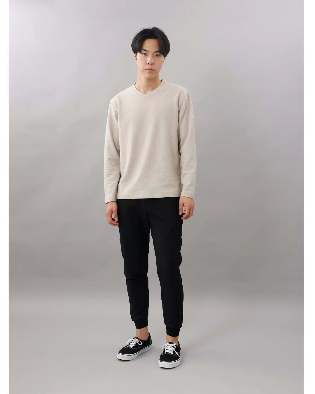 Vネックが首元をすっきりと見せてくれます。ジャケットのインナーとして合わせれば、シャープな印象の大人のカジュアルスタイルになります。