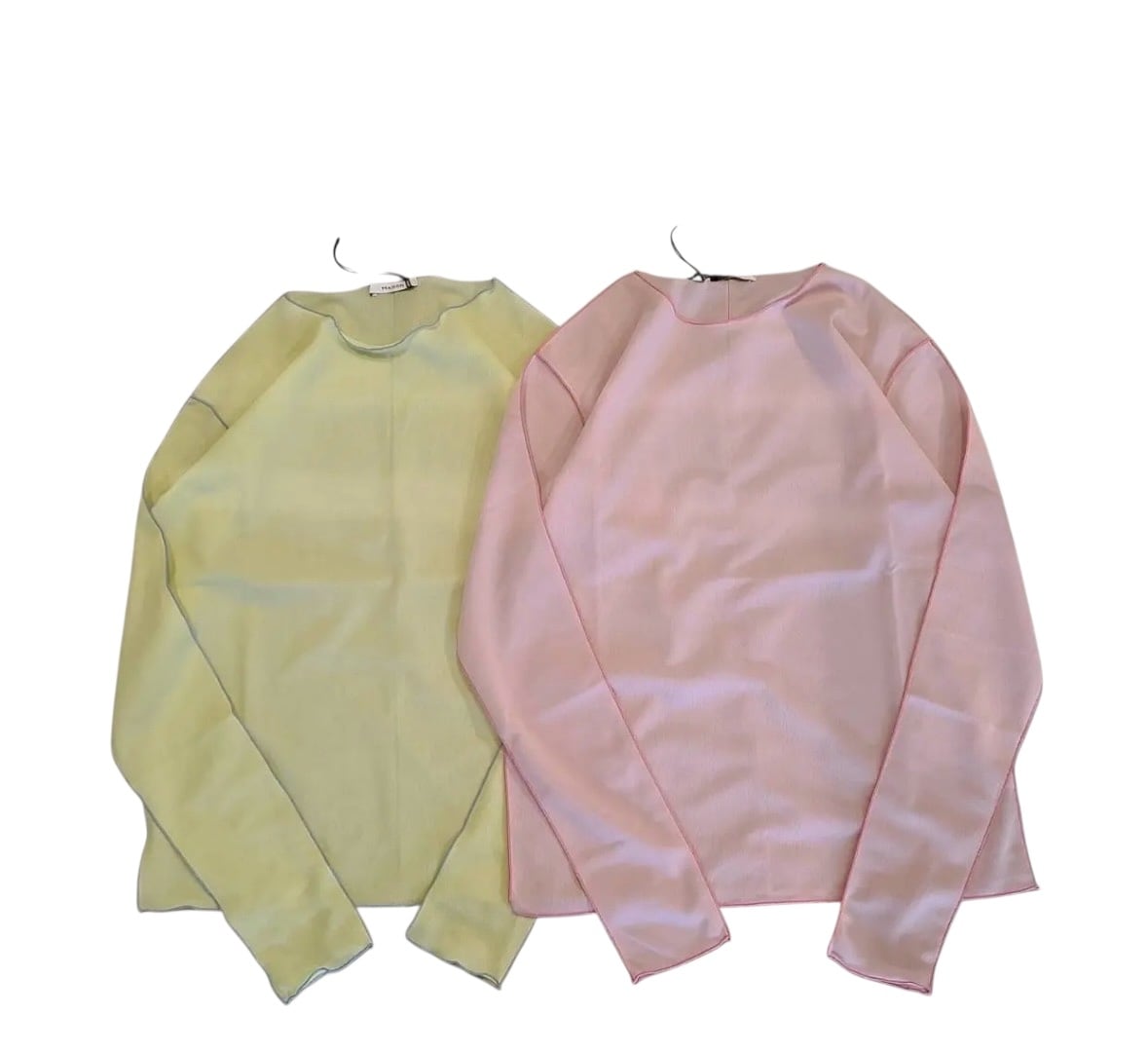 シームに配色メルオーバーを効かせたデザインのクルーネックシアトップスです。